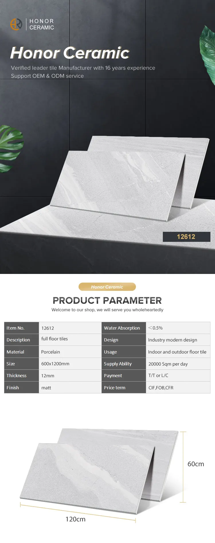 Grey full body indoor and outdoor non slip floor tile of 600x1200mm