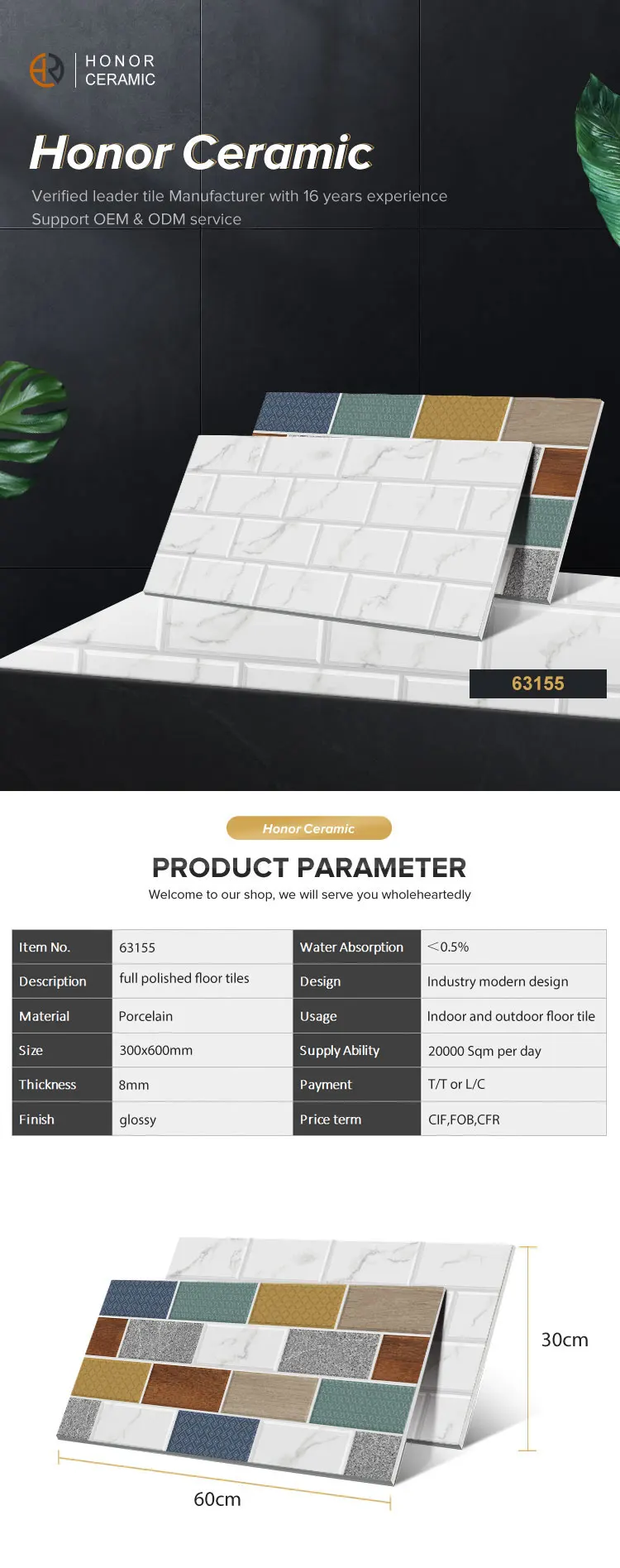 首页 石材、瓷砖、地板、墙面材料 瓷砖 内、外墙砖 ZiBo honor manufacturer 300*600 glossy colorful Mosaic wall tiles for indoors and exterior