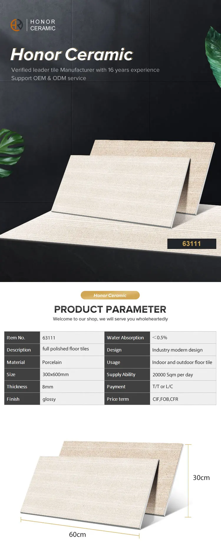 首页 石材、瓷砖、地板、墙面材料 瓷砖 内、外墙砖 ZiBo honor manufacturer 300*600 light orange glossy ceramic wall tile for bathroom
