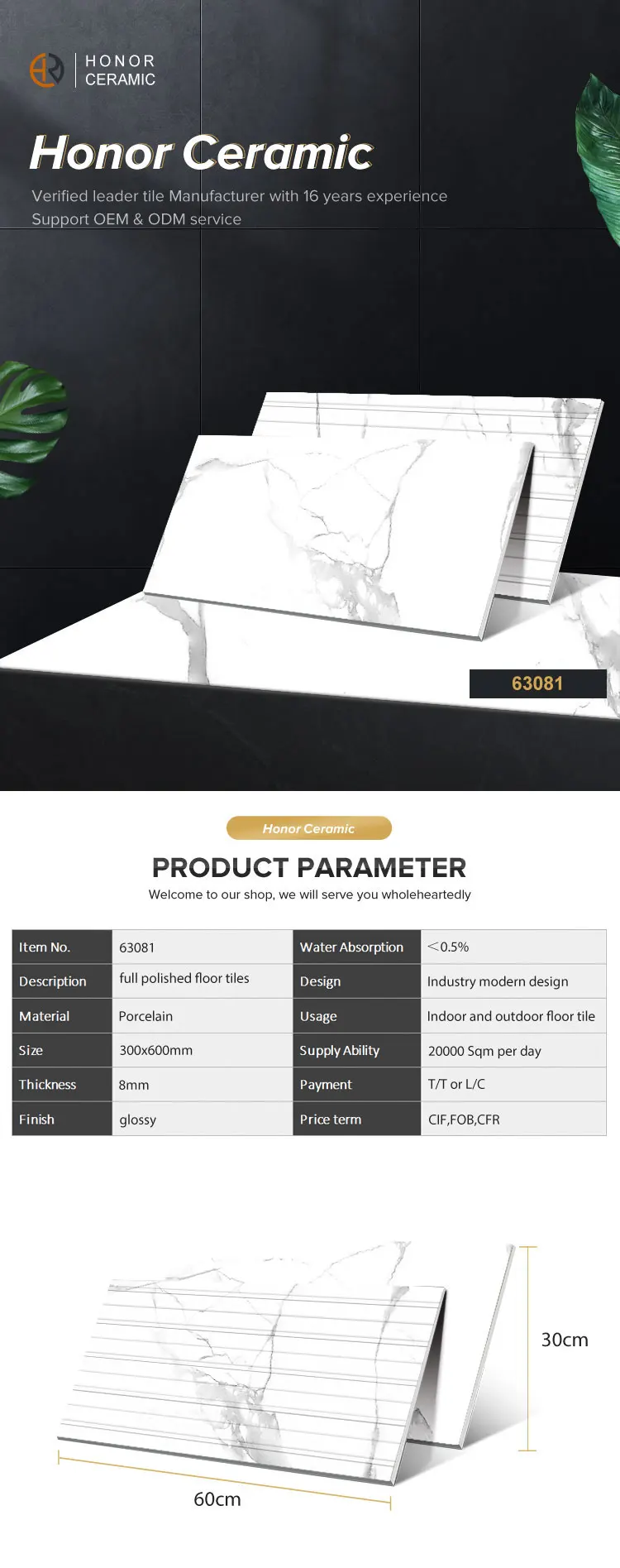 首页 石材、瓷砖、地板、墙面材料 瓷砖 内、外墙砖 ZiBo honor manufacturer wholesale 300*600 white karala wall tiles from china