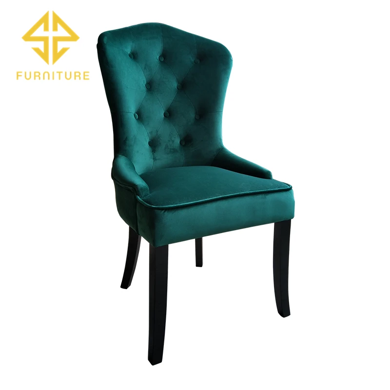 Modern home furniture wood frame green velvet cover upholstered dining room chair for sale