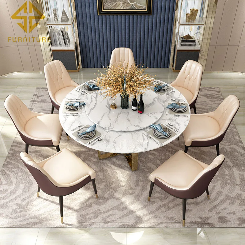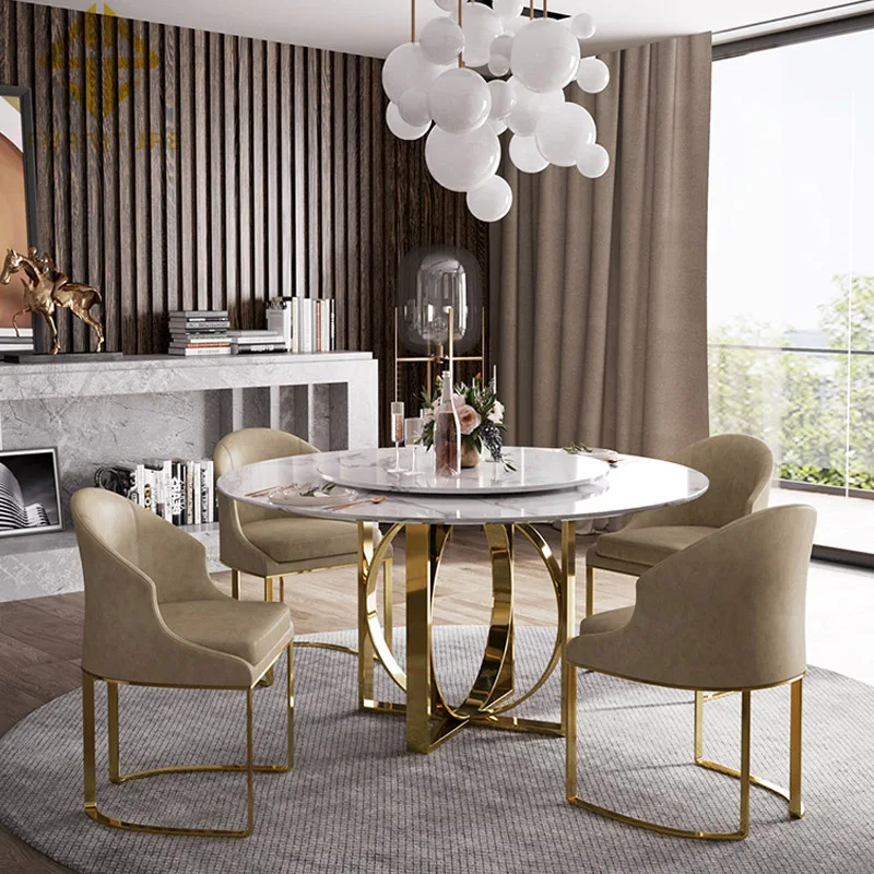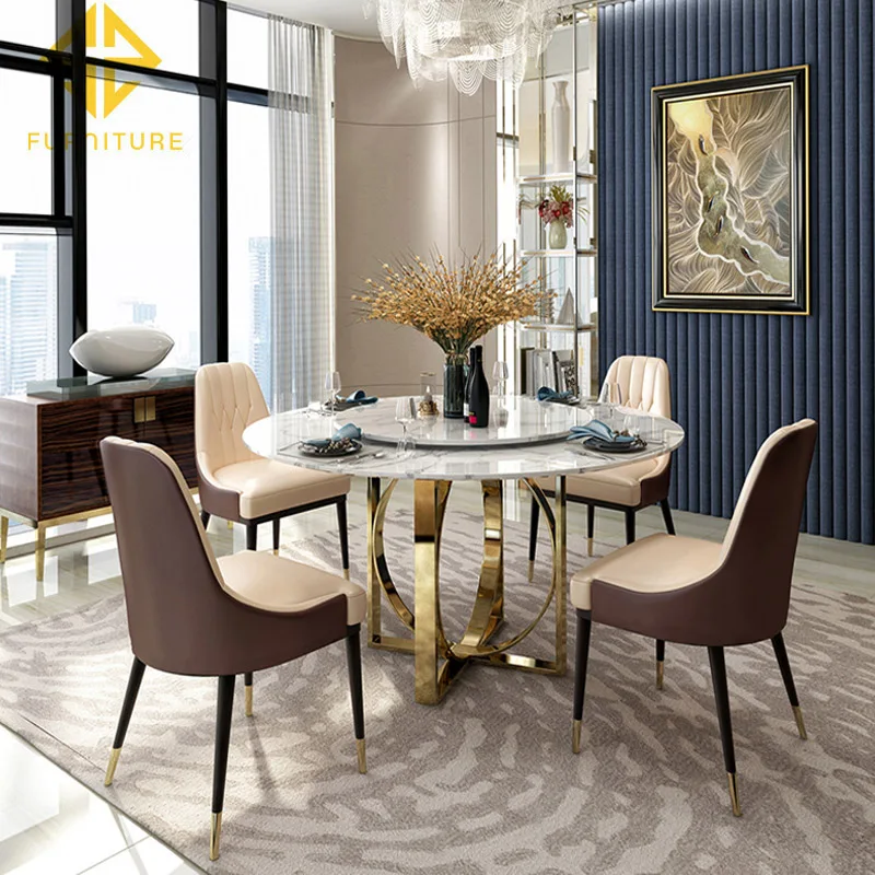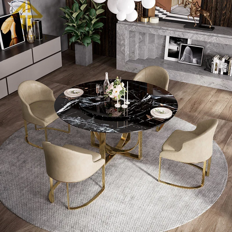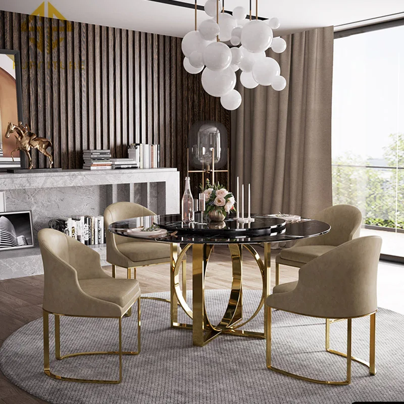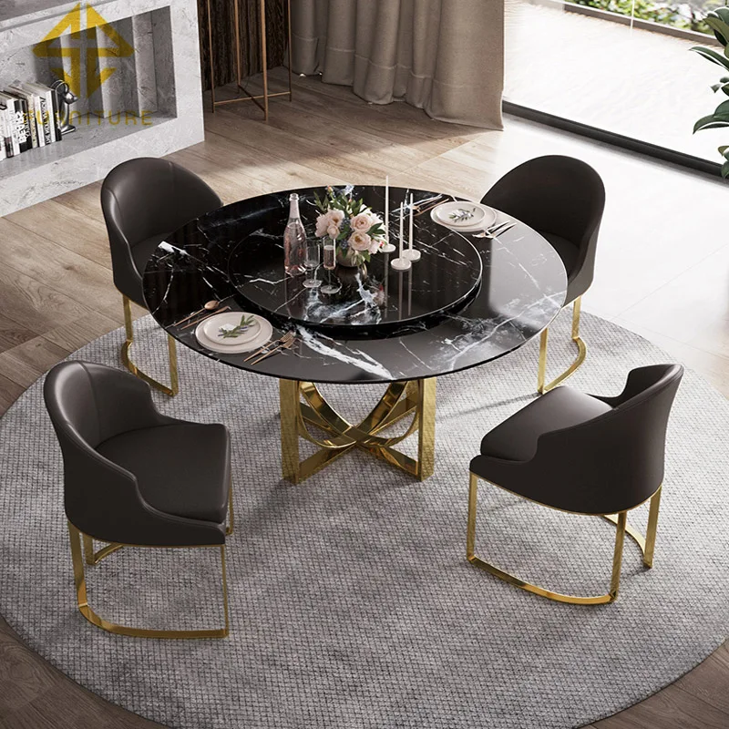 Modern small family furniture design black round marble dining table chairs