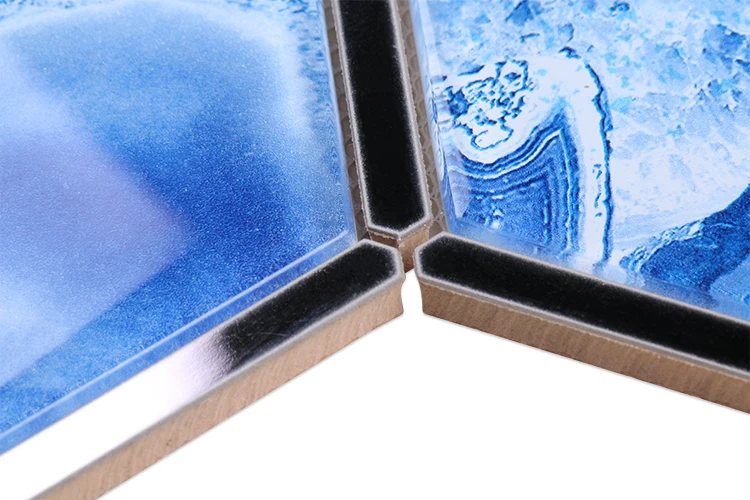 首页 石材、瓷砖、地板、墙面材料 马赛克 玻璃马赛克 Customized mosaik fliesen laminated hexagonal silver blue wall ceramic stainless steel glass mosaics