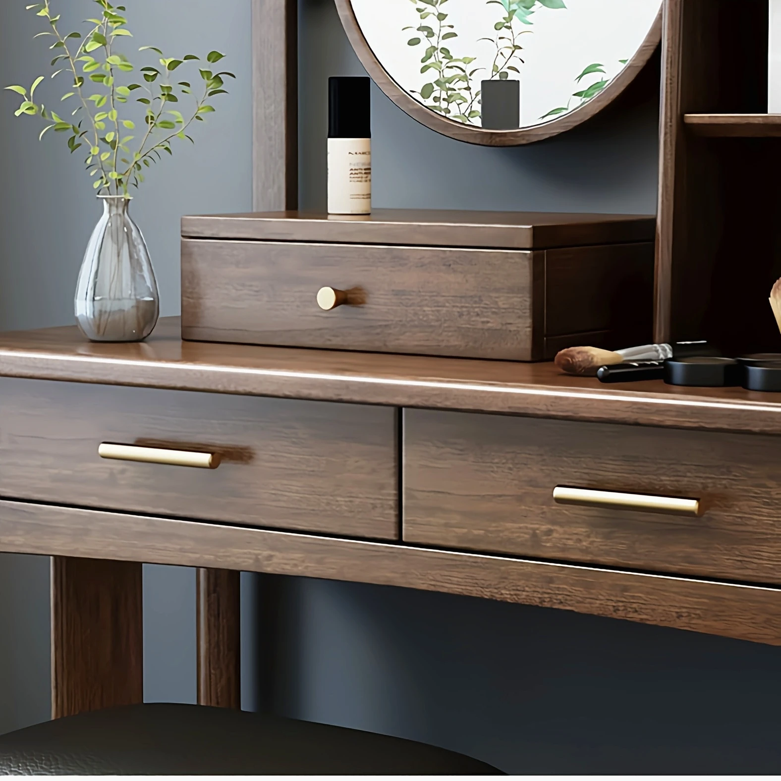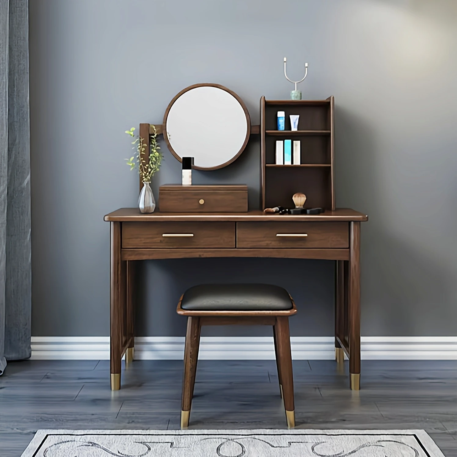 Chinese style solid wood dressing table dressing table with mirror and stool 01