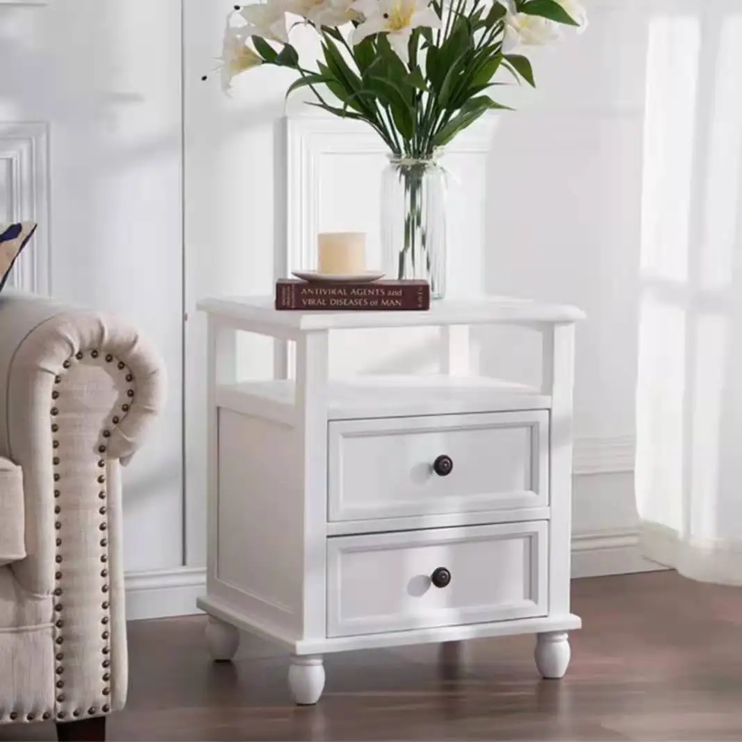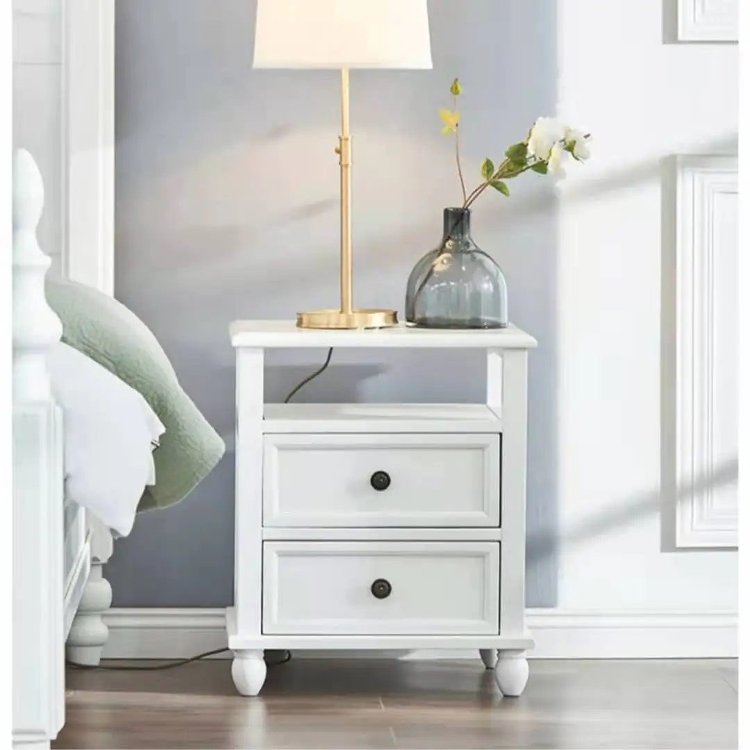 首页 住房活动家具、家用电器 卧室家具 床头柜 White solid wood bedside table with drawers nightstands