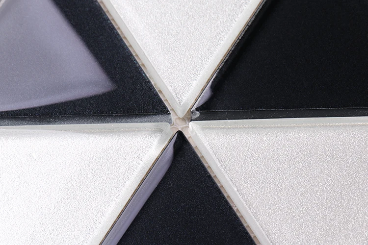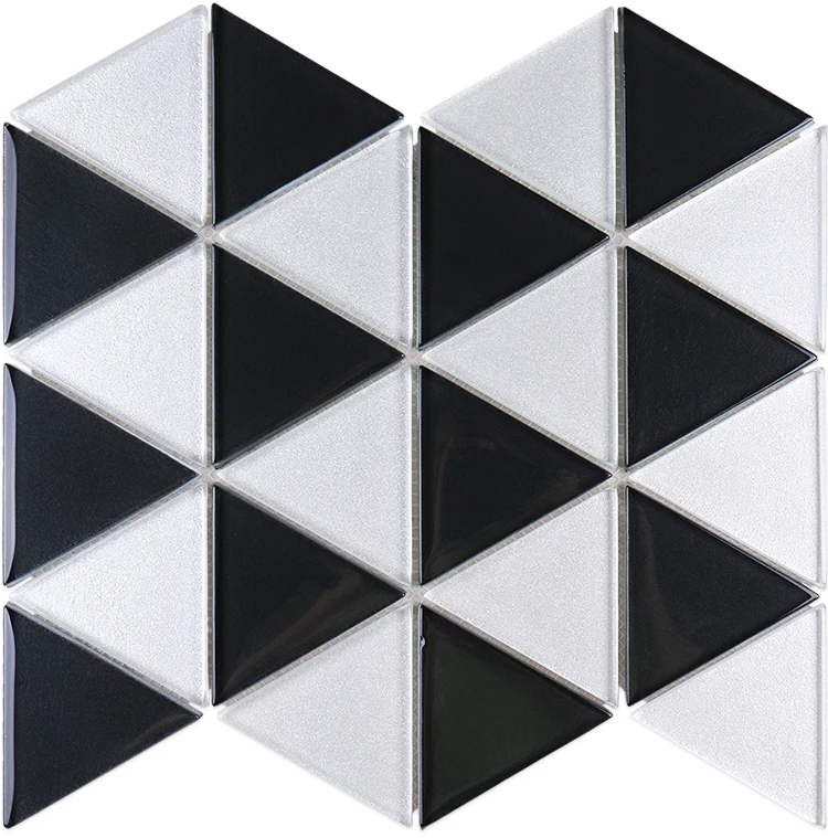 Factory direct sale mozaik cam triangle shape black white backsplash kitchen tiles glass mosaics