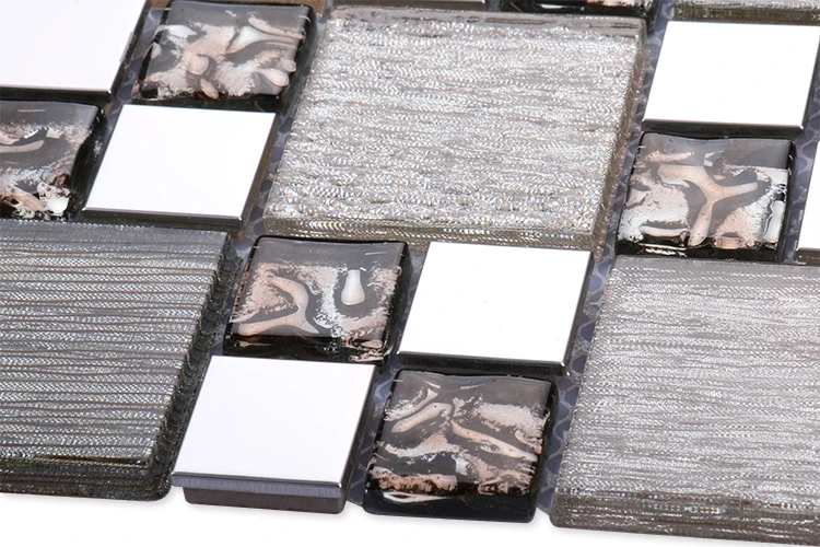 Luxury textured glitter square shaped glass 4mm thin mosaic tile