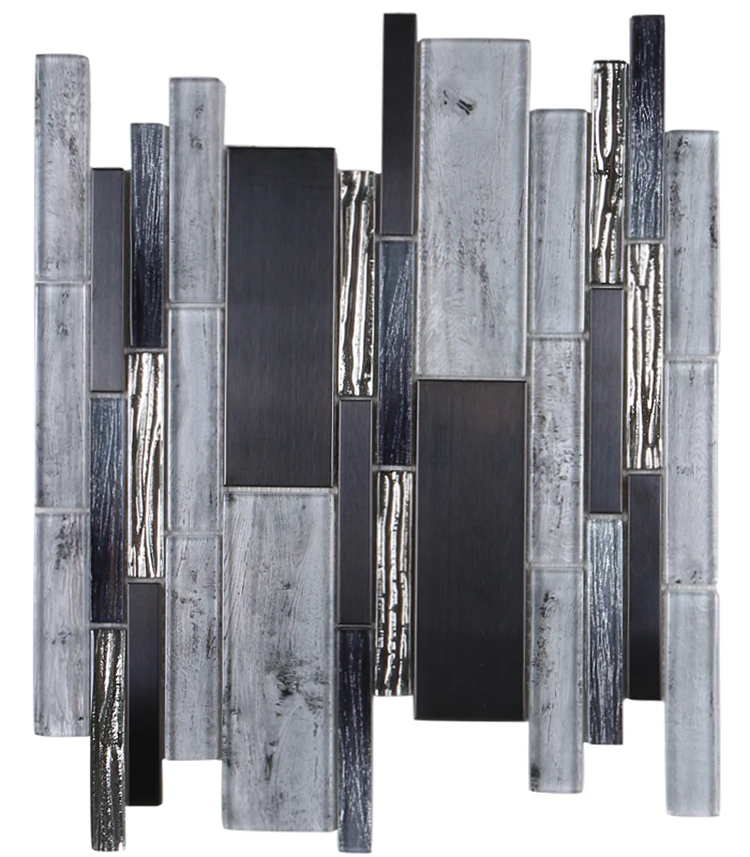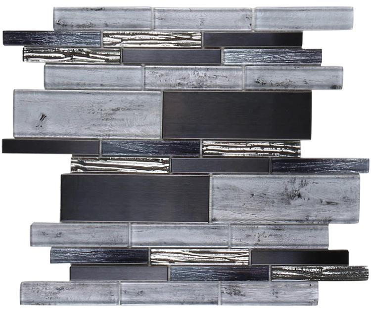 Black glass mix metal strip tile mosaic for fireplace kitchen decoration