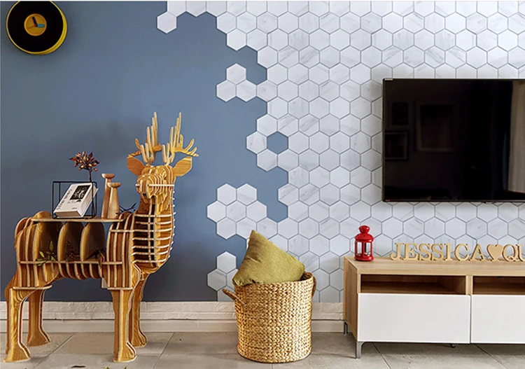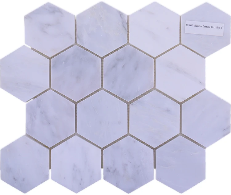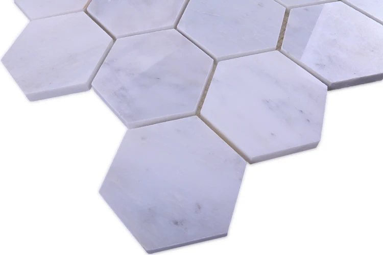 首页 石材、瓷砖、地板、墙面材料 马赛克 石材马赛克 Hexagon carrara white marble mosaic irregular honeycomb bathroom wall tiles waterjet mosaic