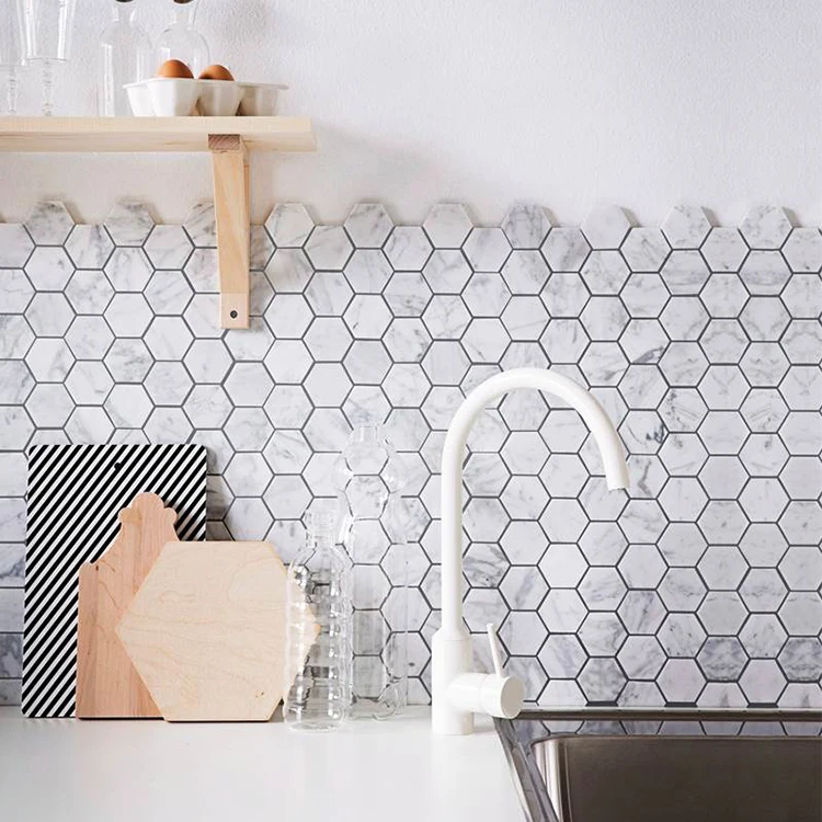 Hexagon carrara white marble mosaic irregular honeycomb bathroom wall tiles waterjet mosaic