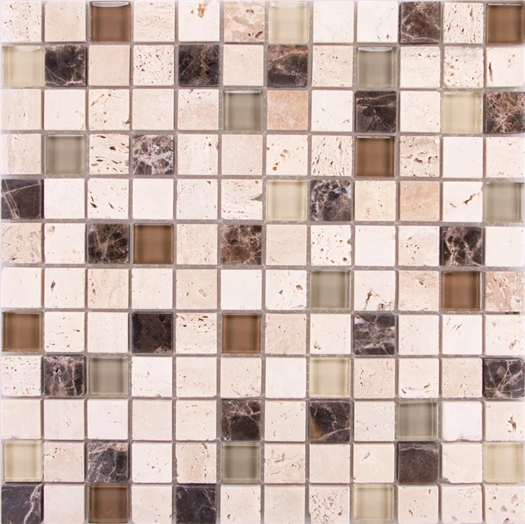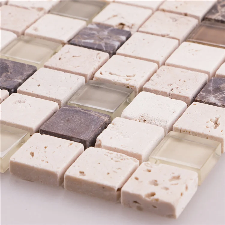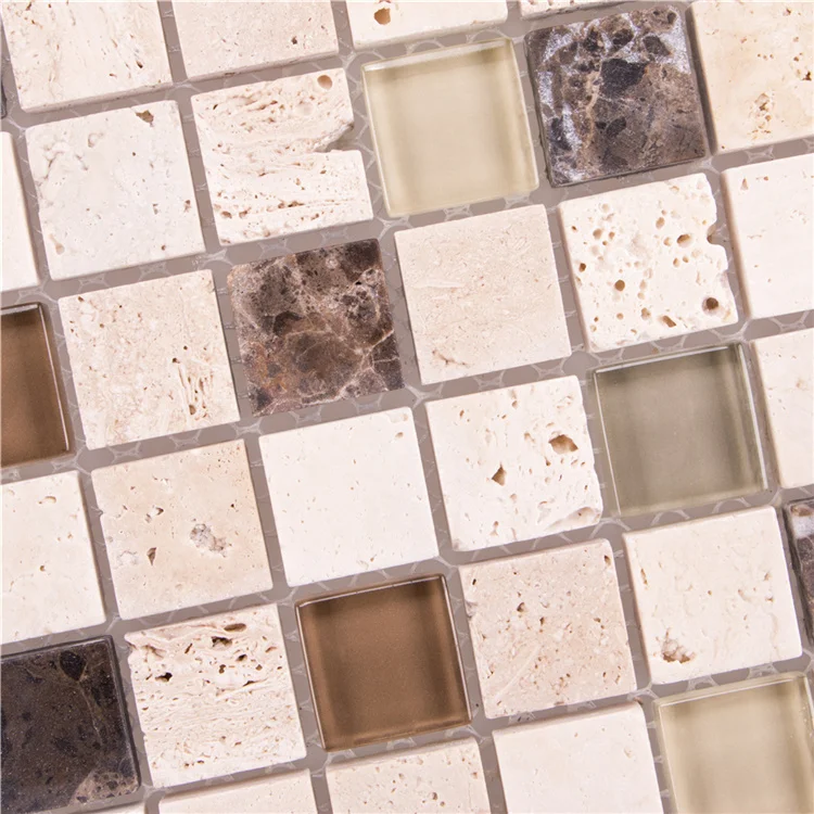 Kitchen backsplash decorative mosaicos square beige and brown natural stone glass mosaic