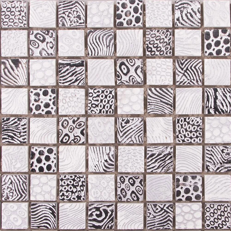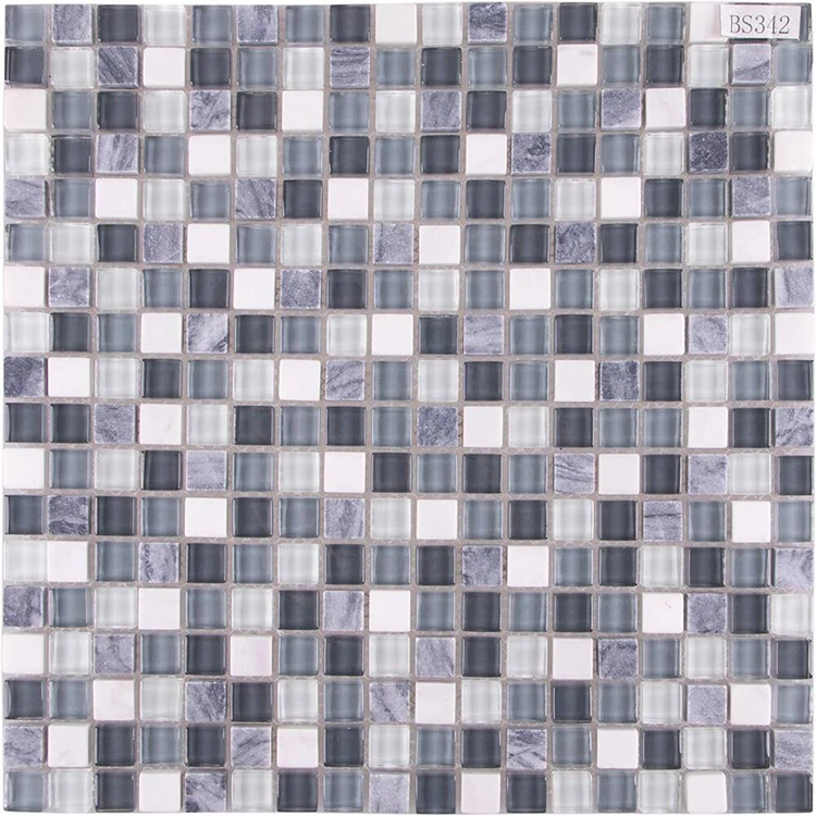White granite mix glass tile glass & stone blend mesh-mounted mosaic tile marble and opaque