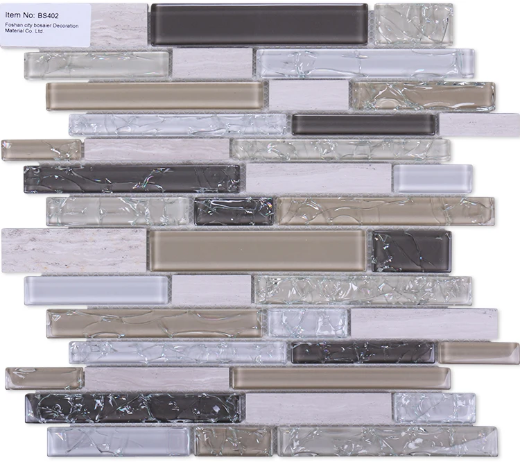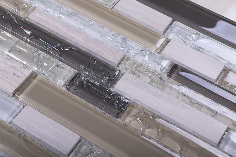 Home wall mosaics tiles strips shape ice crackle mixed color stone glass mosaic