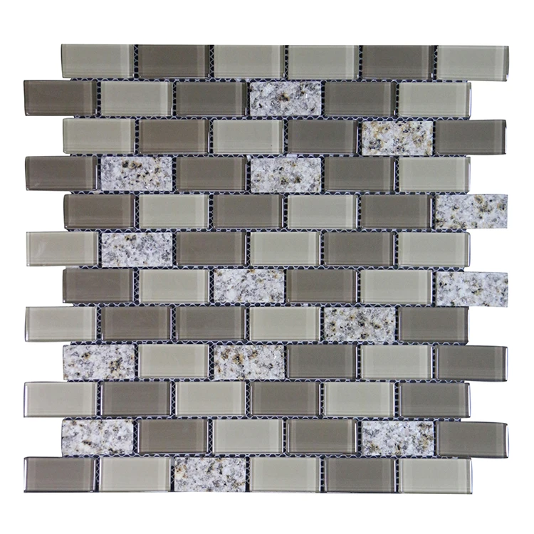首页 石材、瓷砖、地板、墙面材料 马赛克 混合马赛克 Rectangle green glass and granite mosaic tile for bathroom wall kitchen backsplash