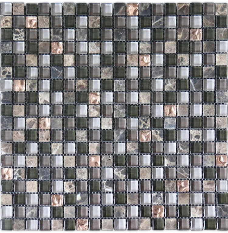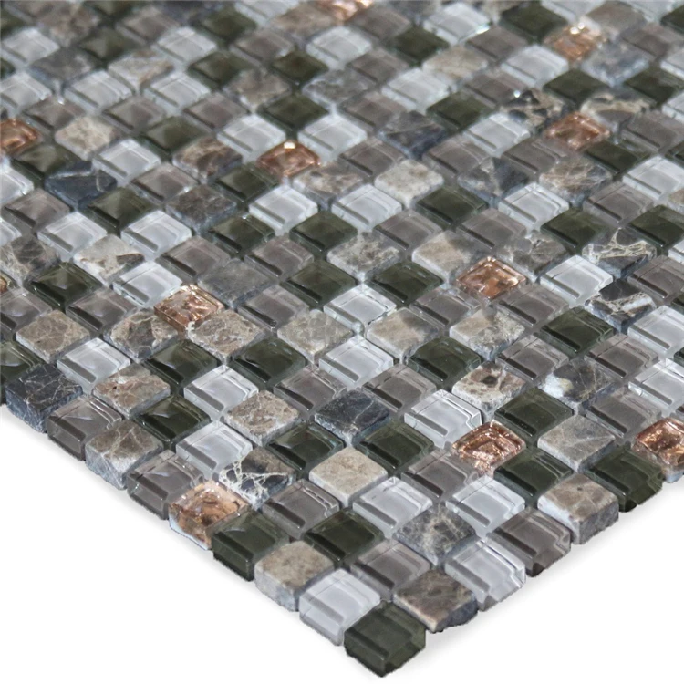 Glazed 3D crystal glass mix natrual marble mosaic wall tile Foshan decorative stone and glass blend mesh-mounted tile