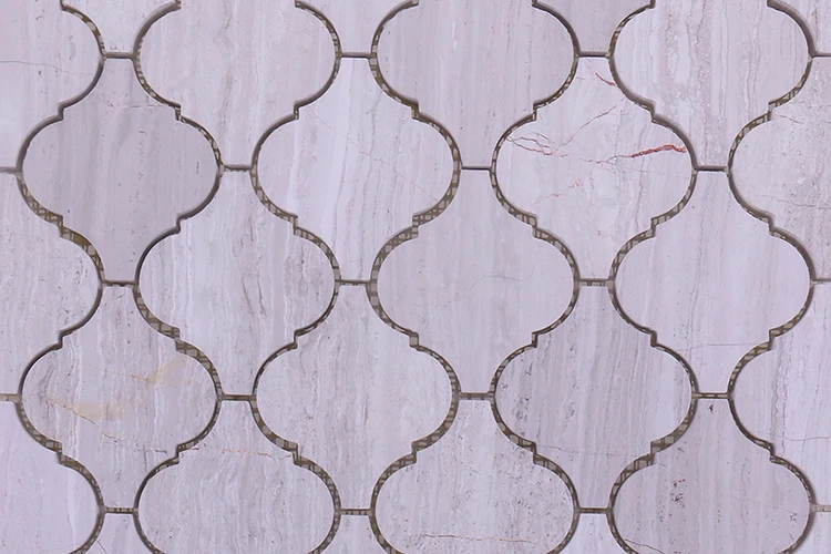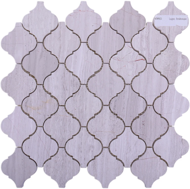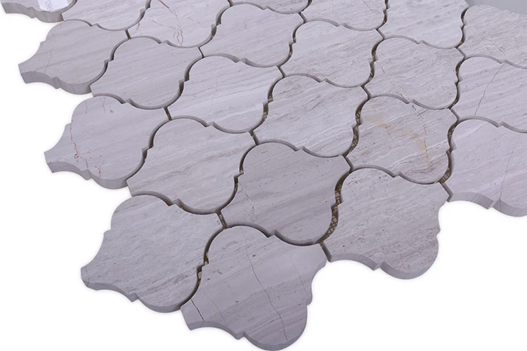 Water jet lantern white wooden marble mosaic Foshan new arabesque irregular stone mosaic for bathroom