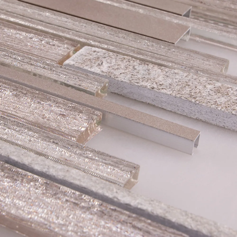 Customized design mosaik laminated silver long strip aluminum interior wall glass mosaic