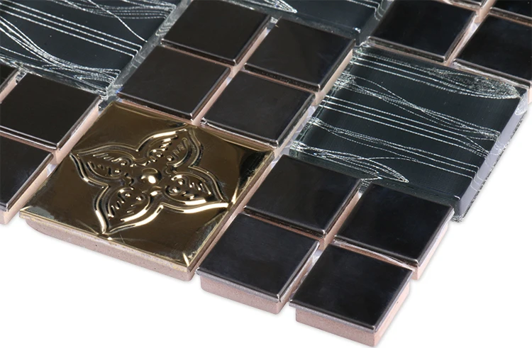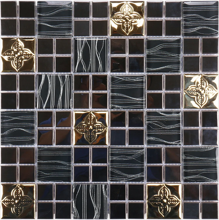 首页 石材、瓷砖、地板、墙面材料 马赛克 混合马赛克 Chinese supplier house decoration metal mosaic gold flower laminated stainless steel glass mosaic