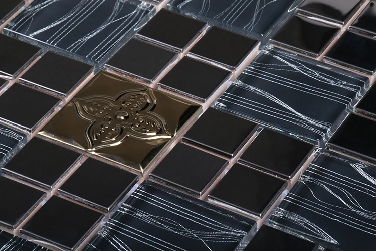 Chinese supplier house decoration metal mosaic gold flower laminated stainless steel glass mosaic