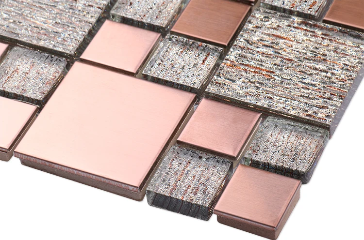 首页 石材、瓷砖、地板、墙面材料 马赛克 混合马赛克 8mm Luxury square glass glitter metal mosaic stainless steel kitchen backsplash mosaic for hotel walls project