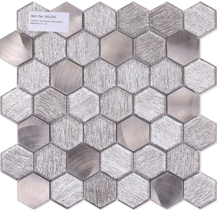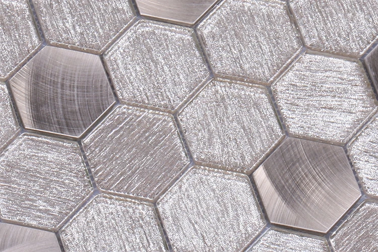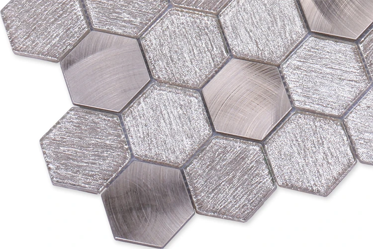 Premium mosaics tile luxury champagne glitter brushed hexagonal glass blend aluminum mosaic for hotel mall