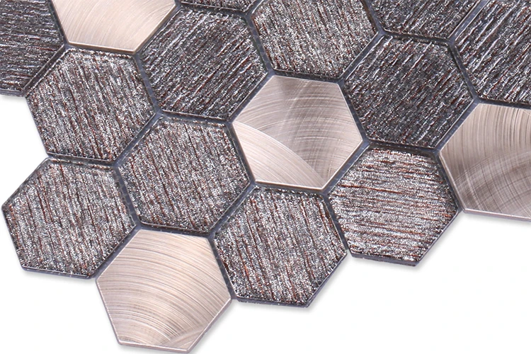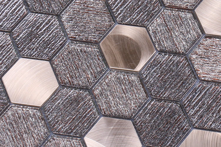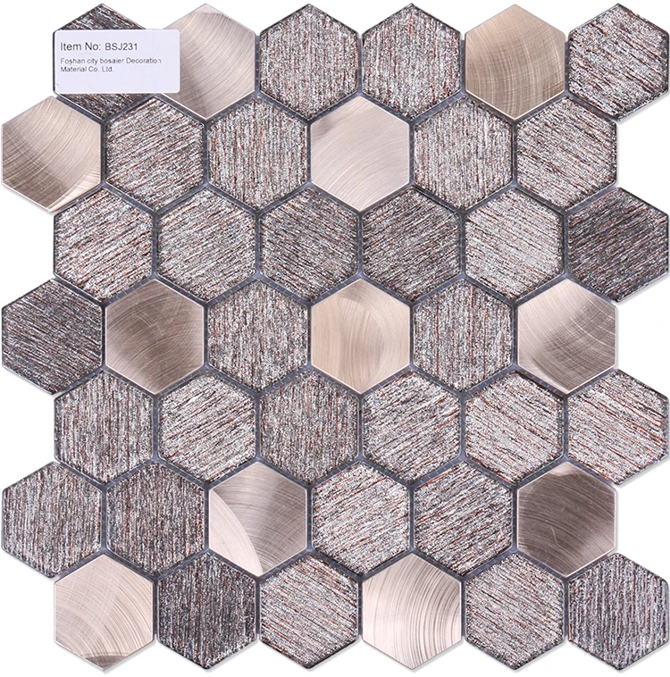Foshan honeycomb mosaics tiles hexagonal shape golden glitter metal glass mosaic