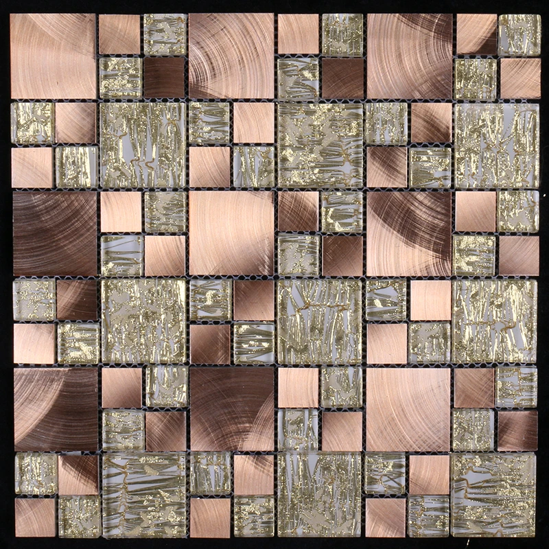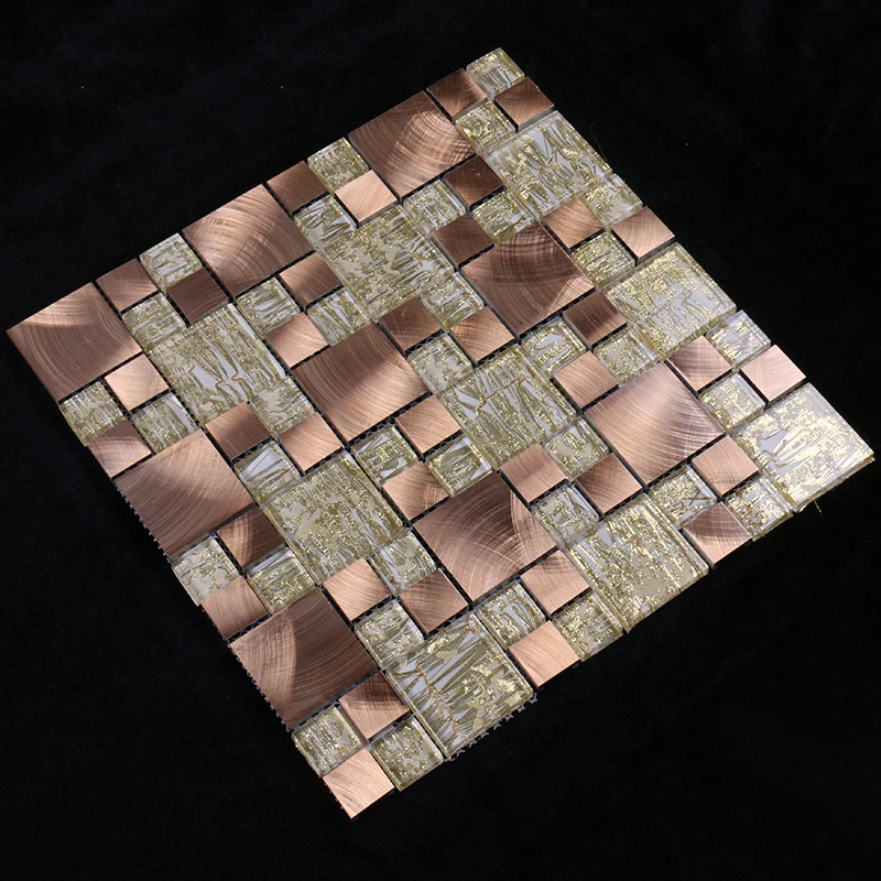 首页 石材、瓷砖、地板、墙面材料 马赛克 混合马赛克 New crystal gold mixed rose gold metal glass mosaic for bathroom wall kitchen backsplash