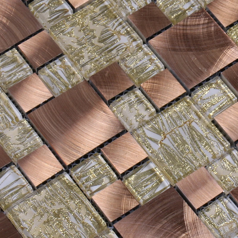 New crystal gold mixed rose gold metal glass mosaic for bathroom wall kitchen backsplash