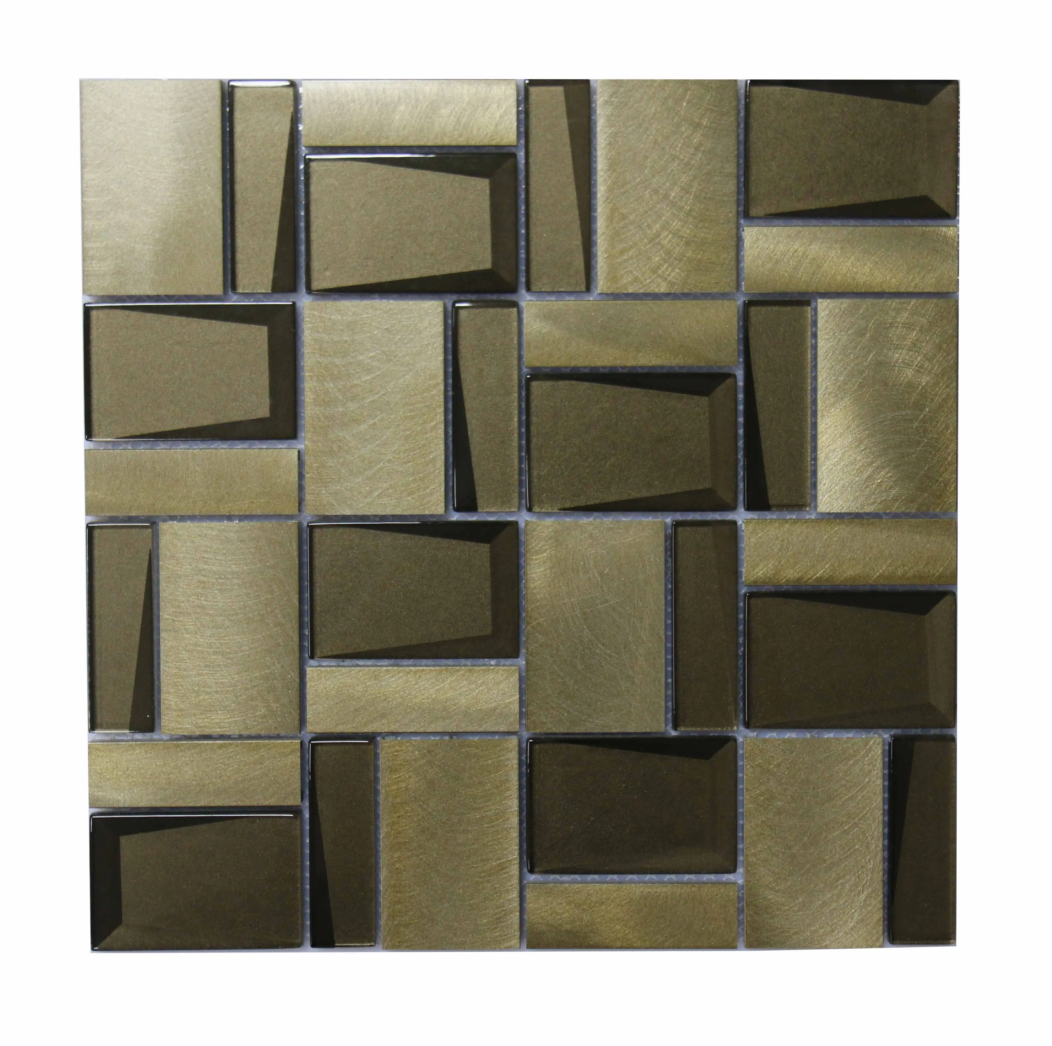 首页 石材、瓷砖、地板、墙面材料 马赛克 混合马赛克 Luxury glitter metal nickle gray 3D beveled Aluminum glass mosaic for wall kitchen backsplash