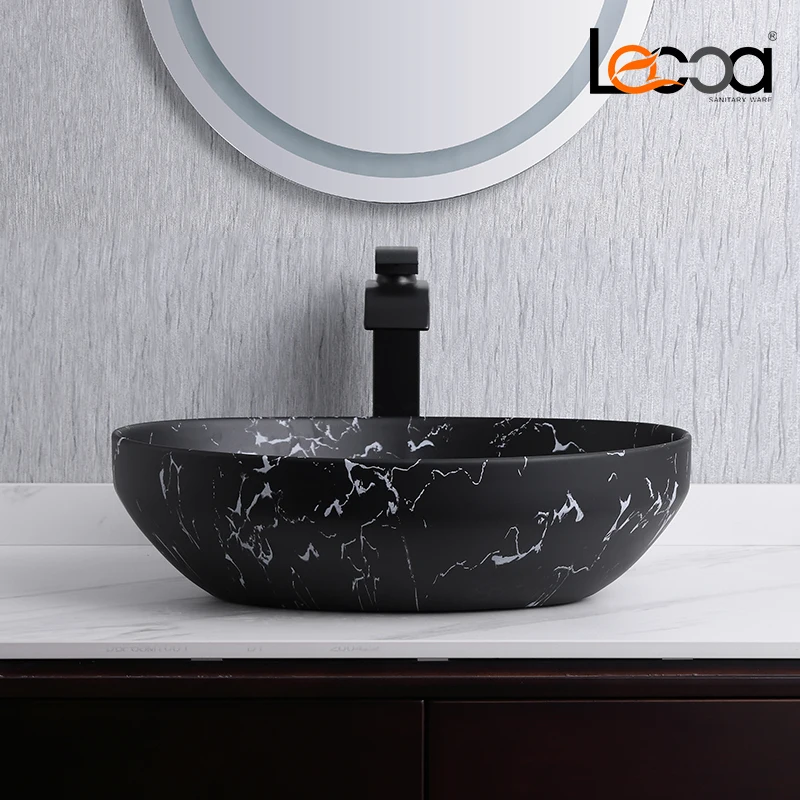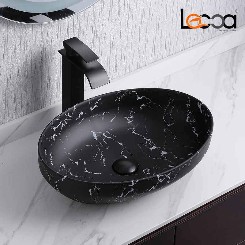 Hot Sale black Oval Wash Basin Modern Art Ceramic Countertop Bathroom Basin