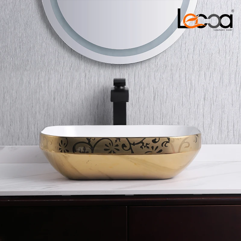 首页 浴室产品、水槽 洗手盆 Commercial hand wash basin electroplate golden color wash basin