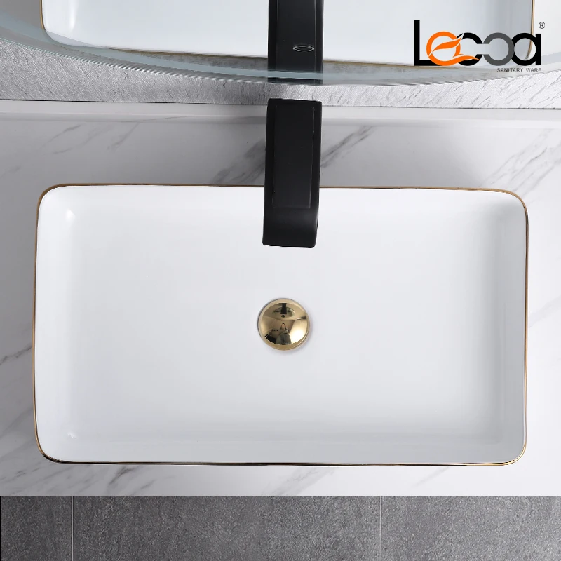 Rectangular ceramic porcelain flower pattern plating gold art basin for home use