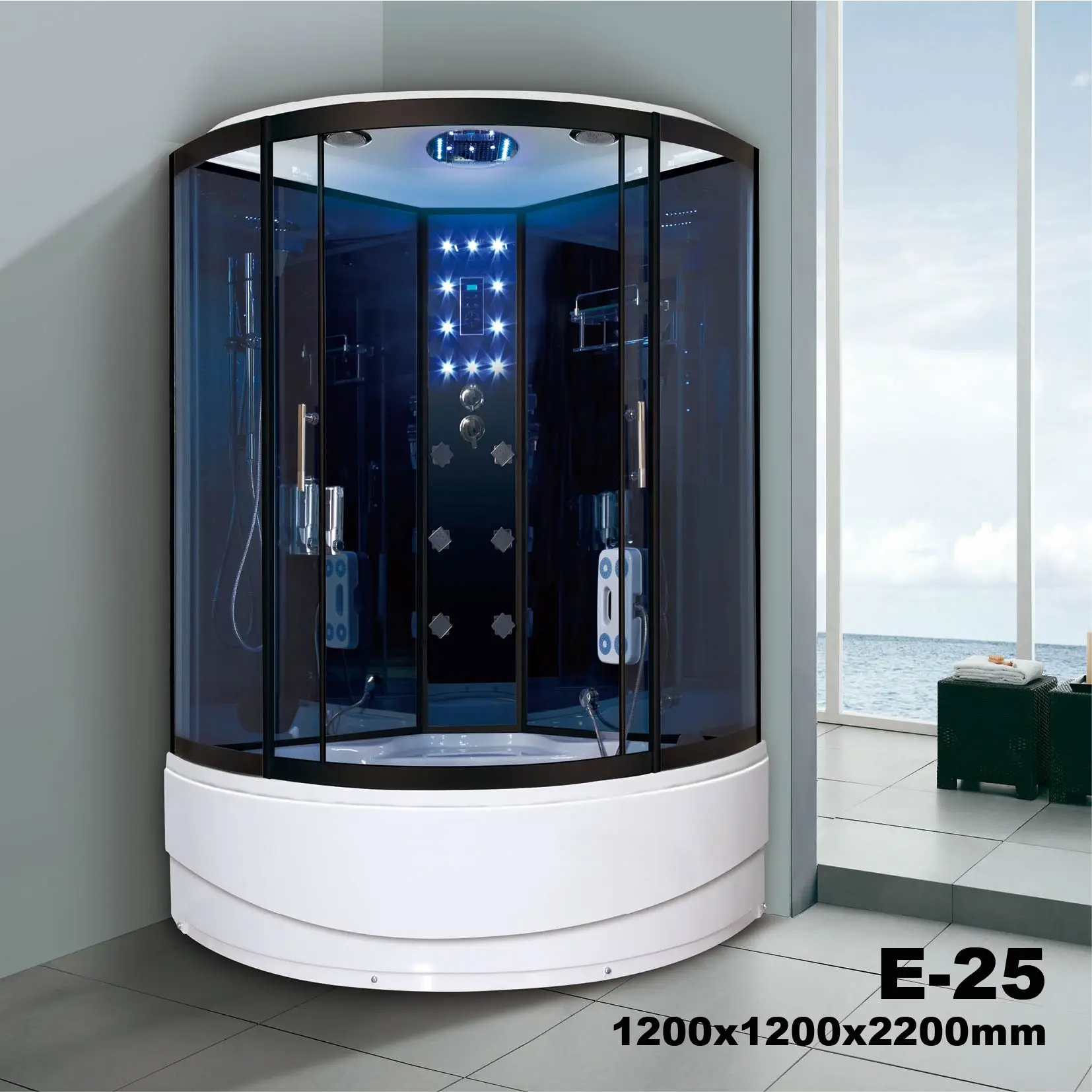 首页 浴室产品、水槽 淋浴房 & 桑拿房 淋浴房 、淋浴屏风、 浴缸屏风 1200*12009*2200mm Aluminum Alloy Tempered Glass ABS shower room
