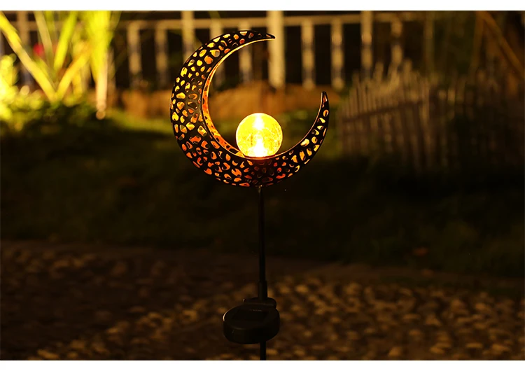 Magic Hollow-carved Moon Crackle Glass Garden Decorative Solar Wall Garden Street Light Spot Light For Garden