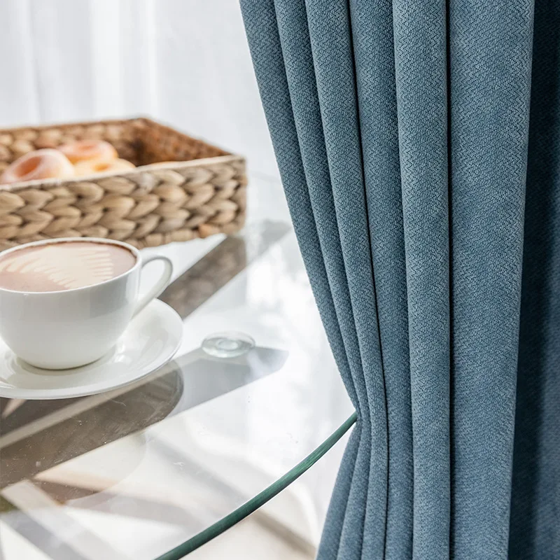 Modern Simple Pure Color Flannel Curtain Draped Windows Curtains Bedroom China Curtains