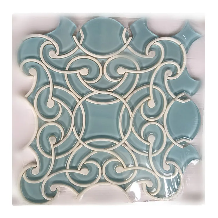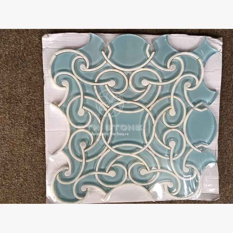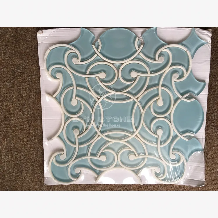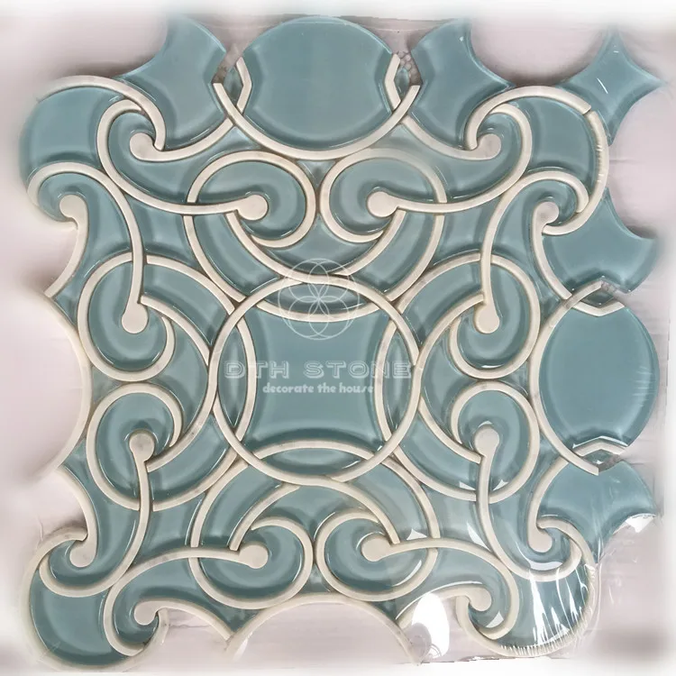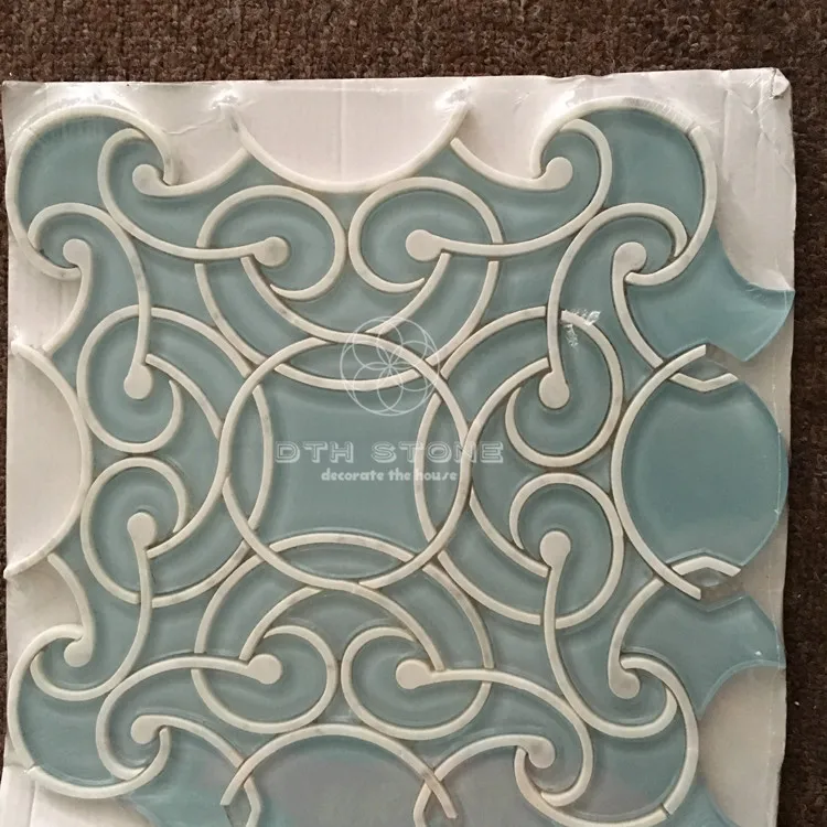 DTH Stone pure white marble mix glass mosaic tile waterjet