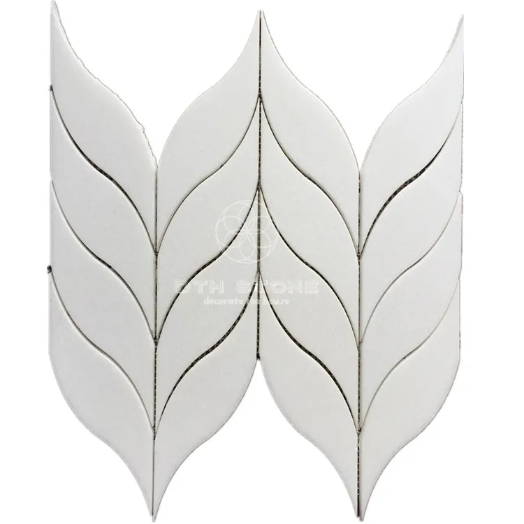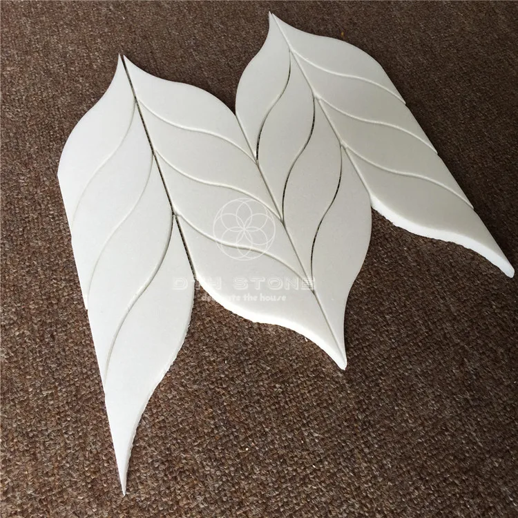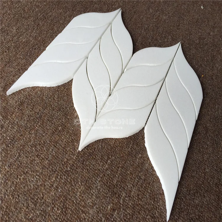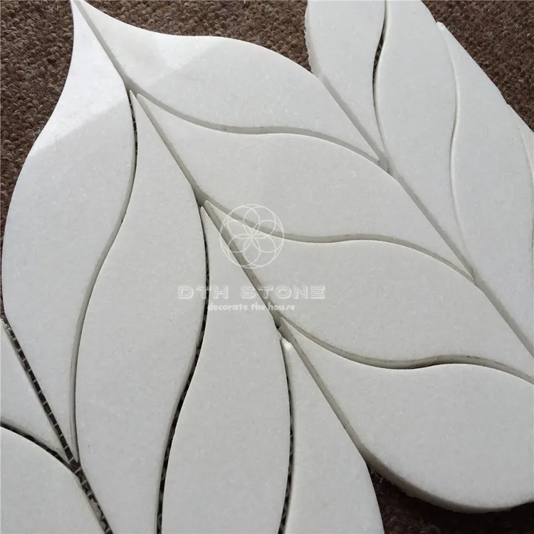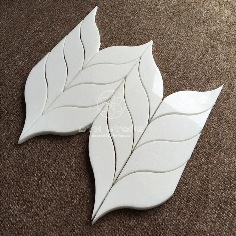 DTH Stone design leaf type volakas white marble water jet marble mosaic tile