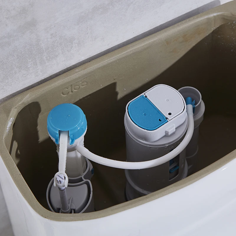The flushing fitting is silence dual flushing fitting, it can reduce the noise and save water. 2 inch drain valve, combined with