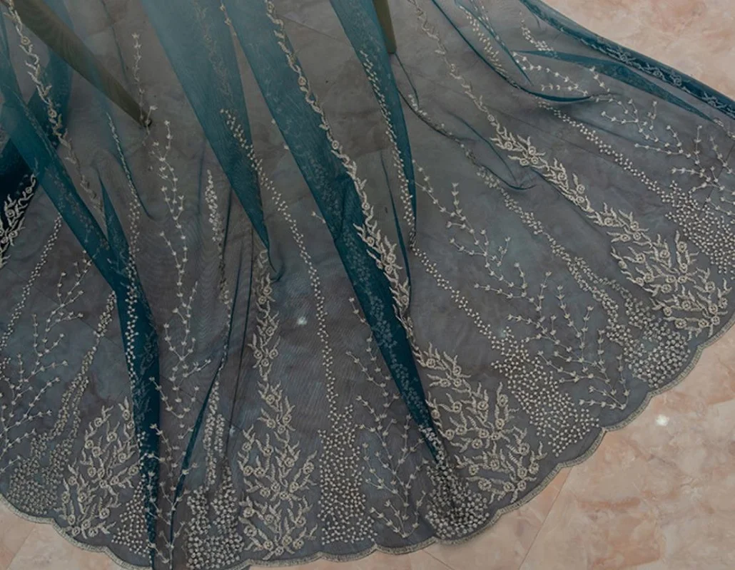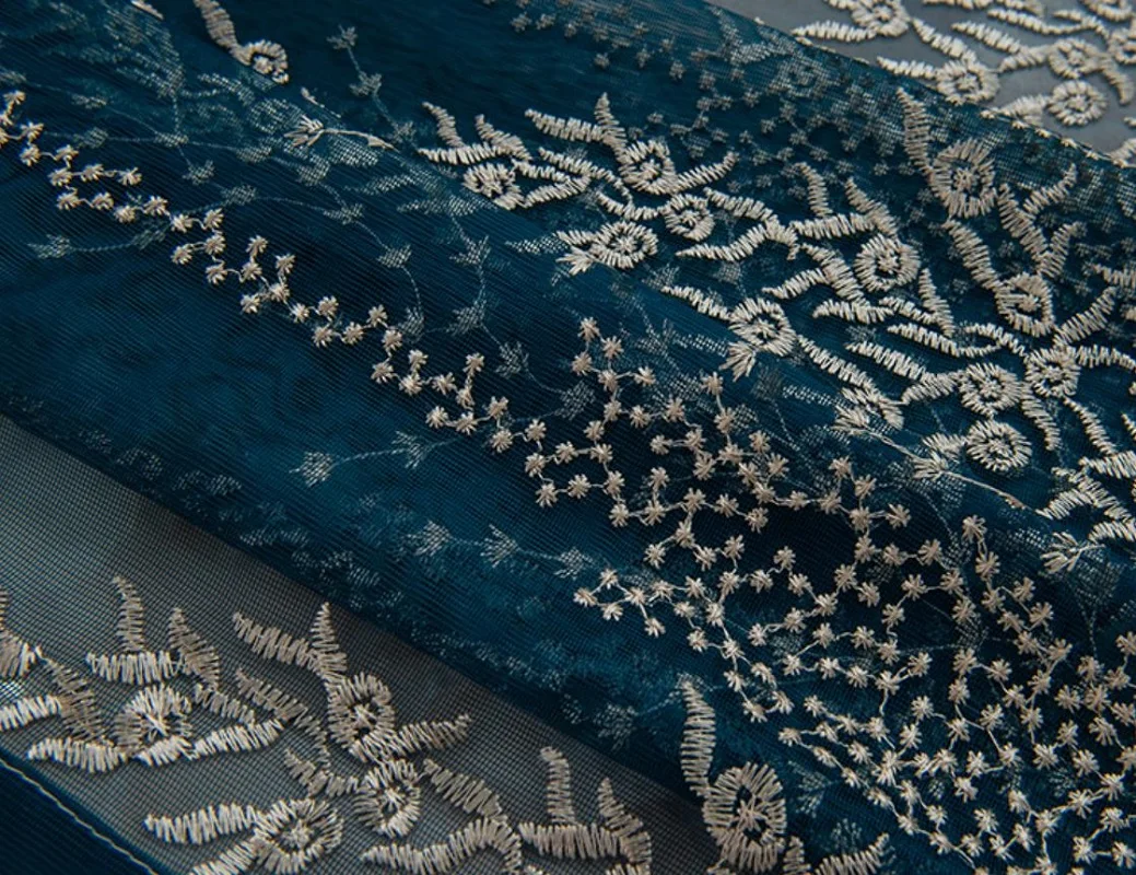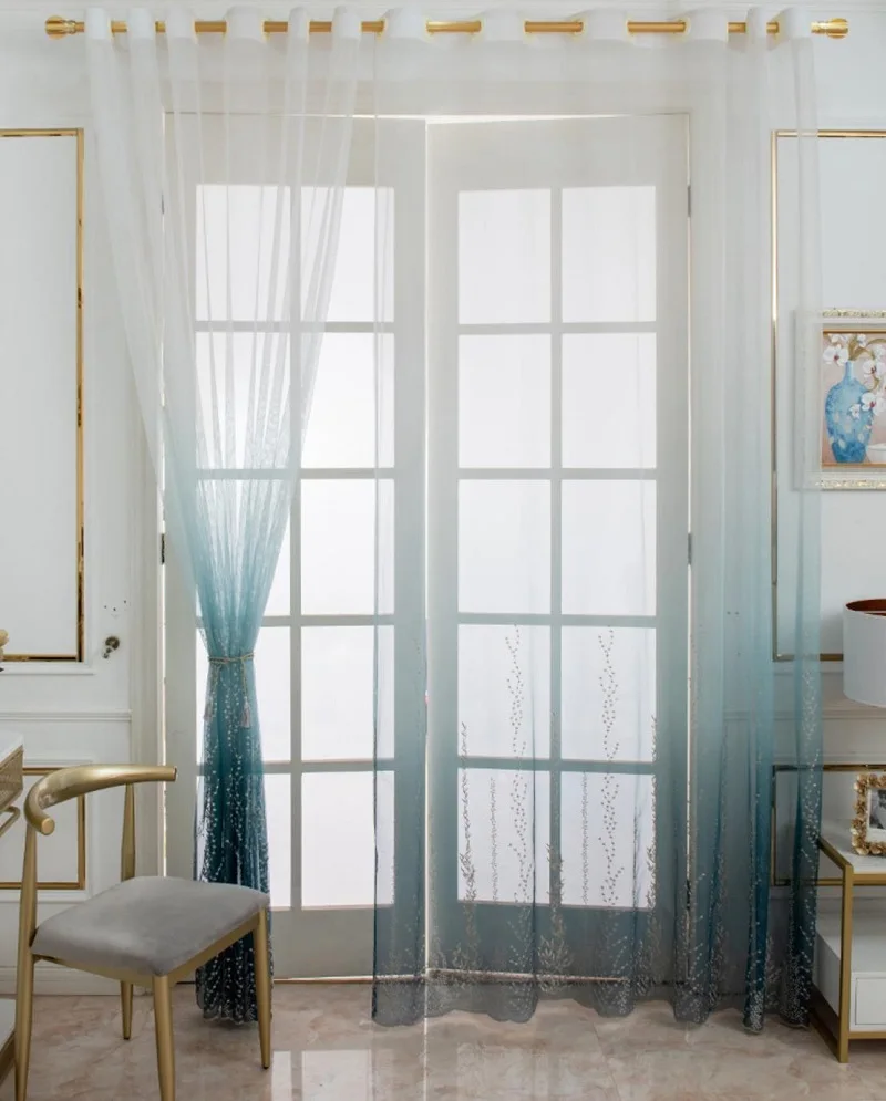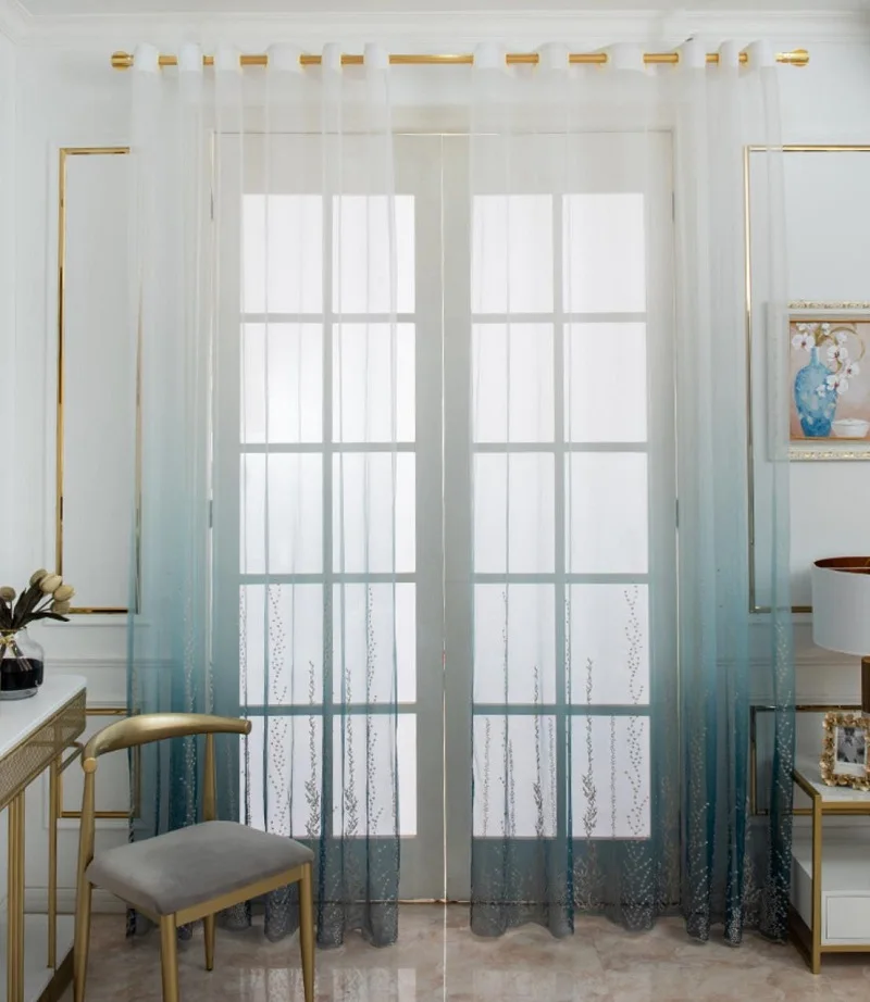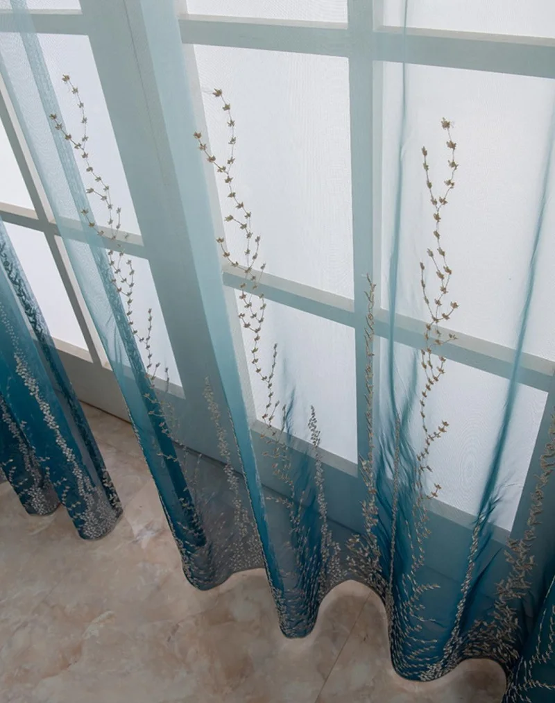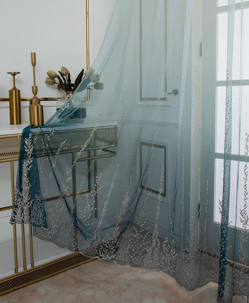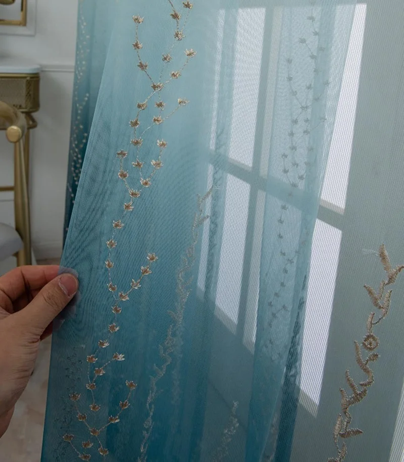 Best selling sky blue voil curtains embroidery sheer curtain for house