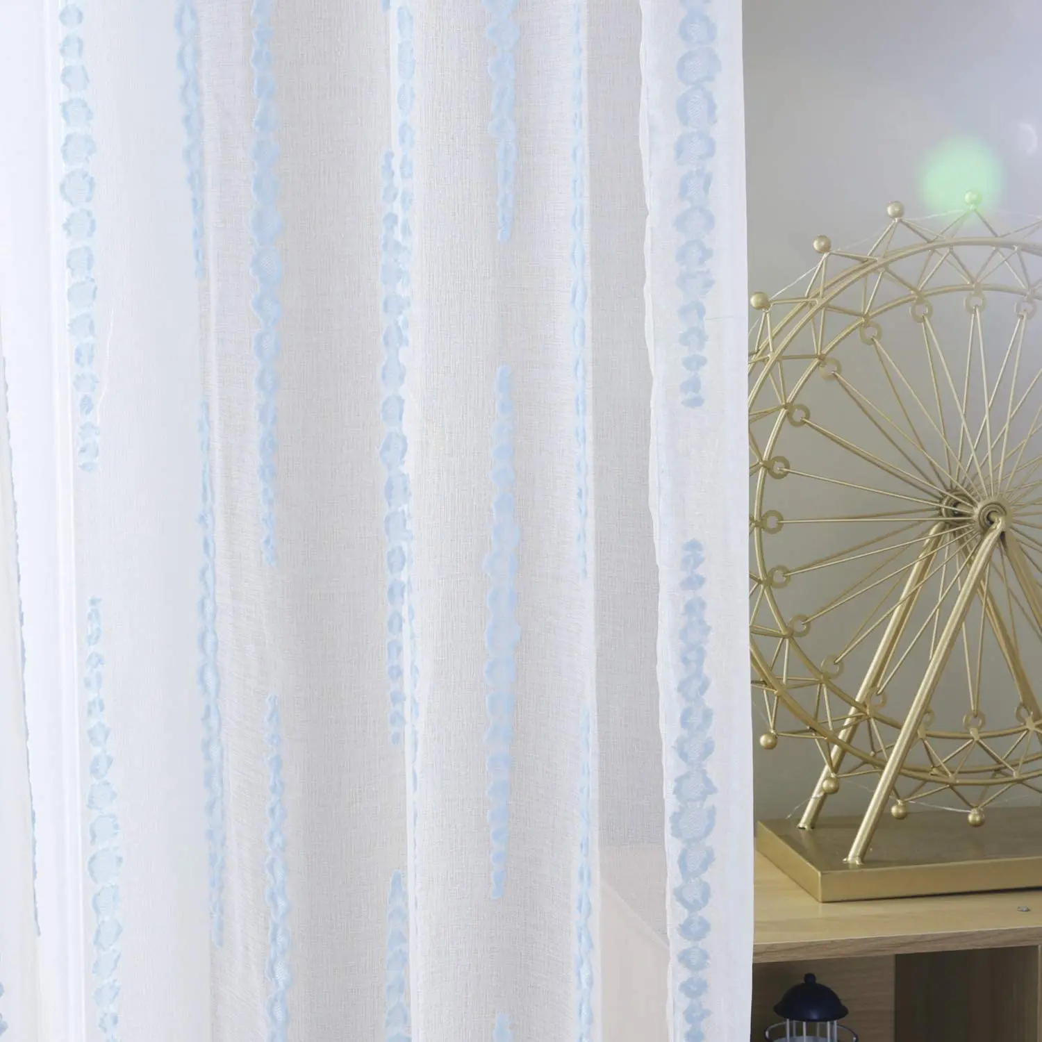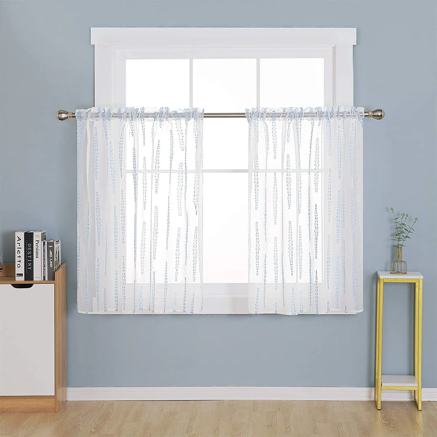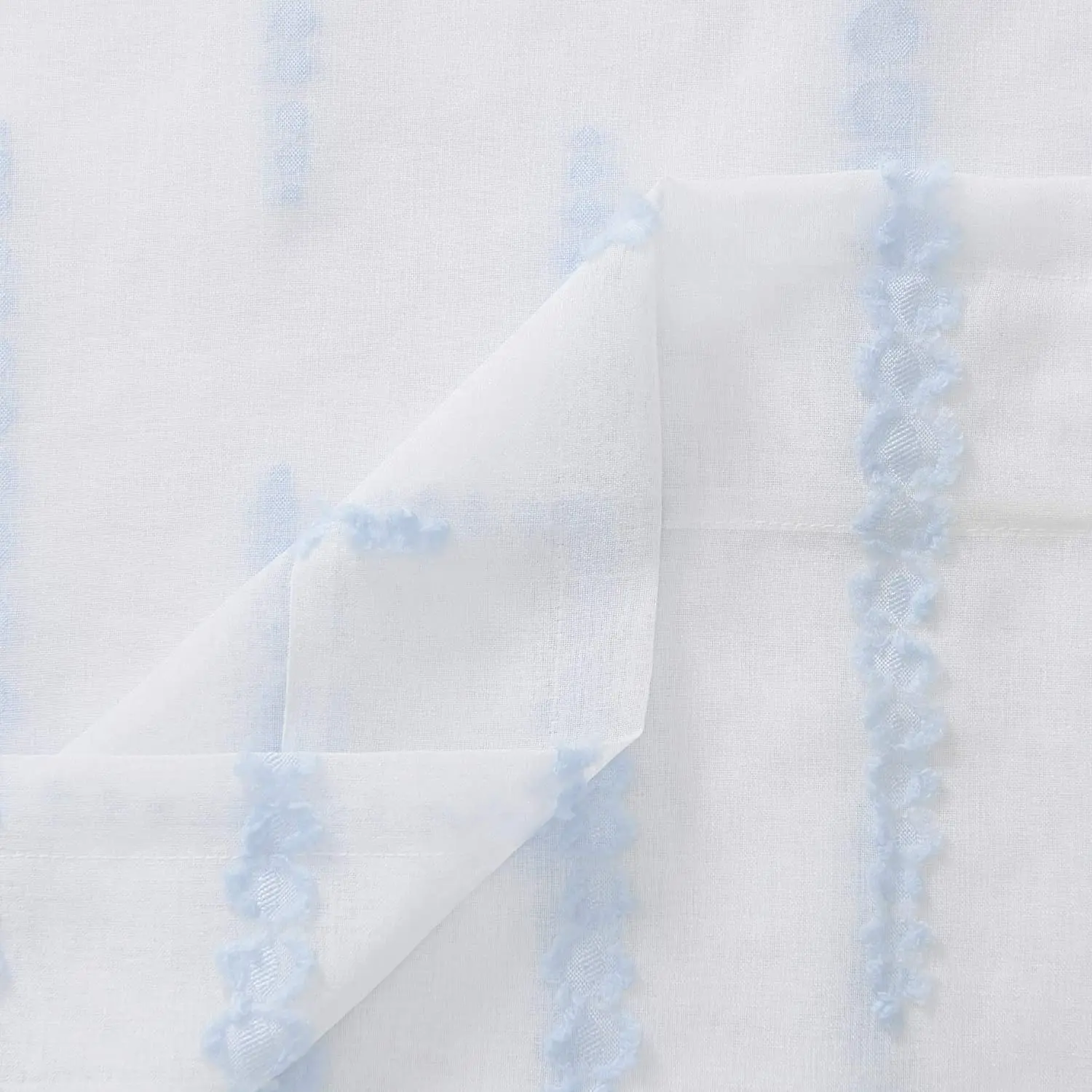 Jacquard Rod Pocket Sheer Curtains Sky Blue Striped Design White Cafe Curtains for Bedroom