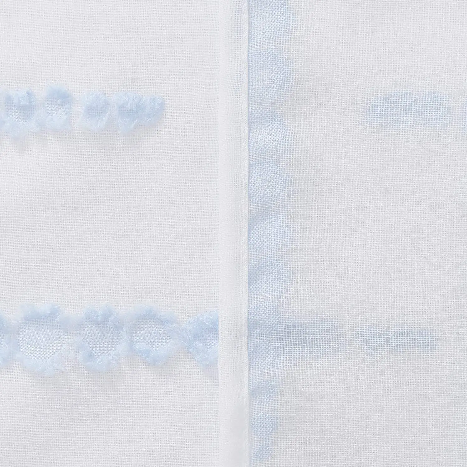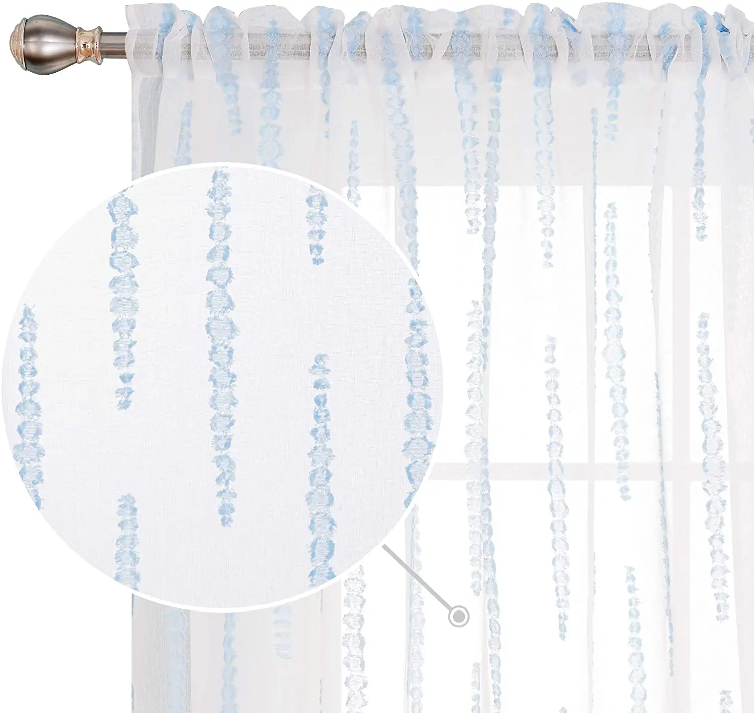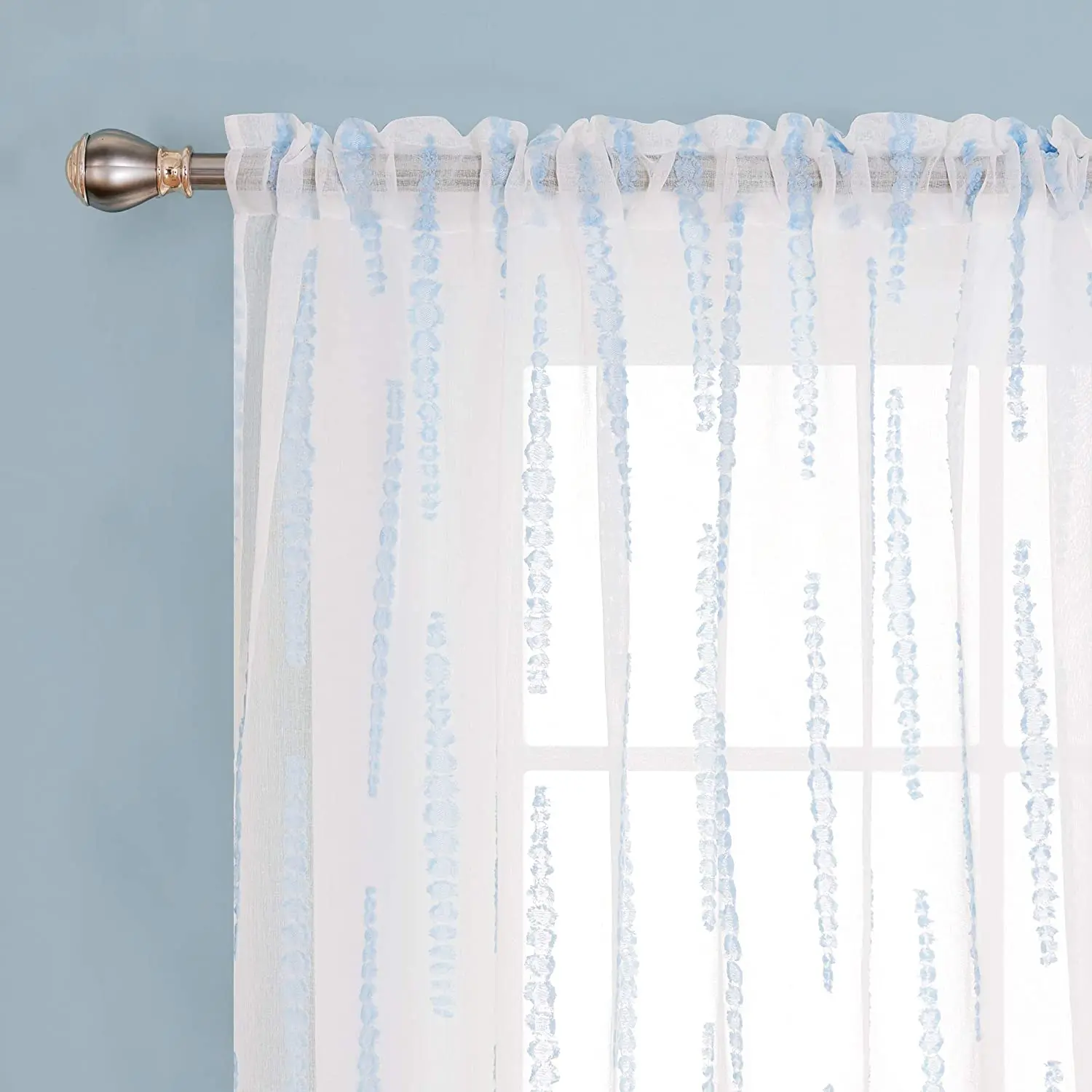 Jacquard Rod Pocket Sheer Curtains Sky Blue Striped Design White Cafe Curtains for Bedroom