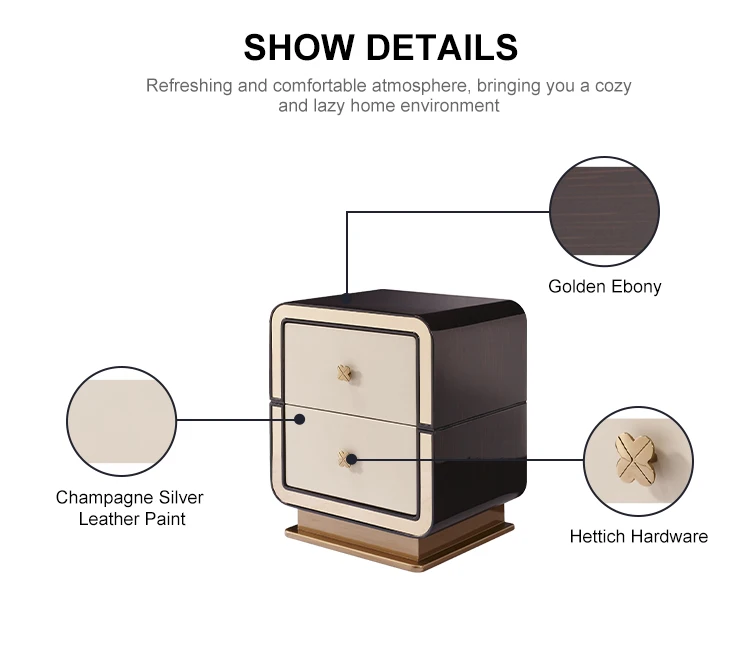 Hot Sale High End Luxury Furniture Luxury Wood Bedside Table Nightstand