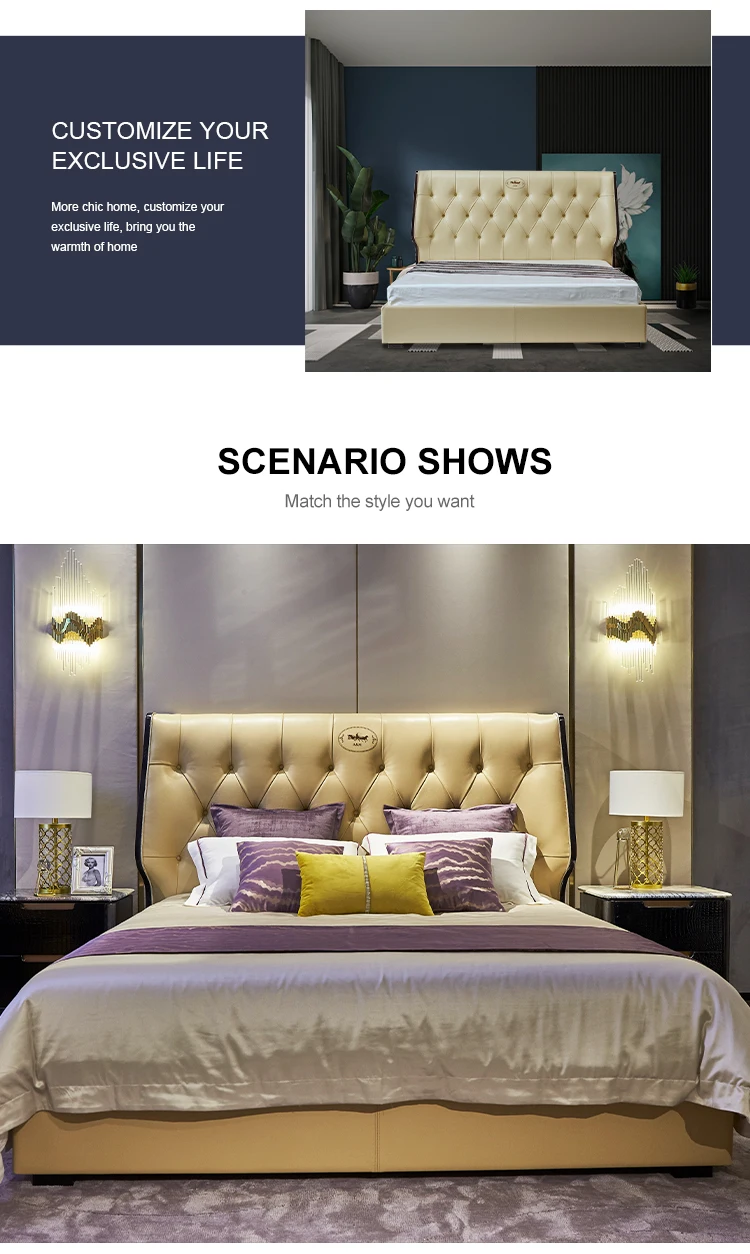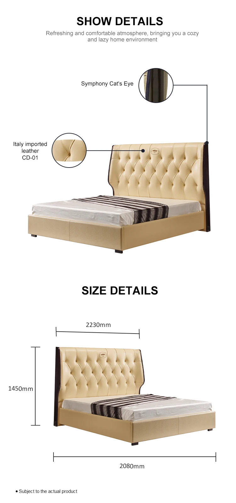 首页 住房活动家具、家用电器 卧室家具 Best Quality Promotional Bedroom Modern Furniture Genuine Leather Leather Soft 1.8m Bed