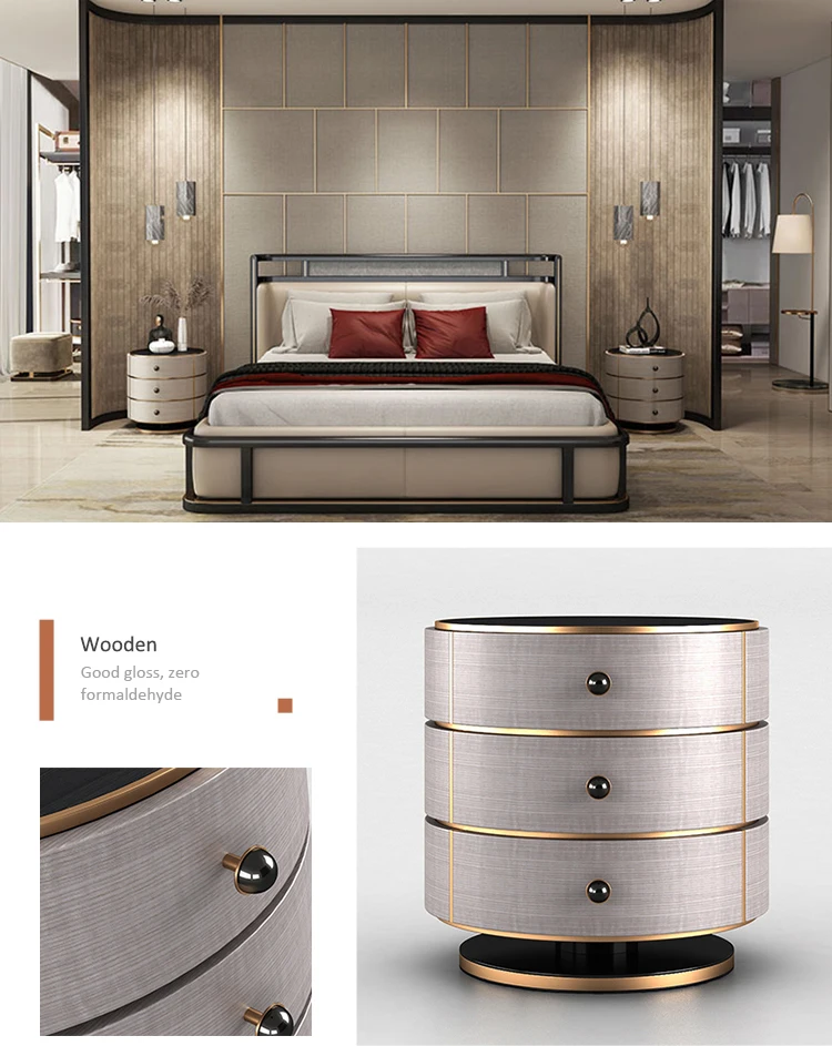 Italian Bed Room Furnitures Modern Queen Size Bed Set Modern With Round Bedside Table