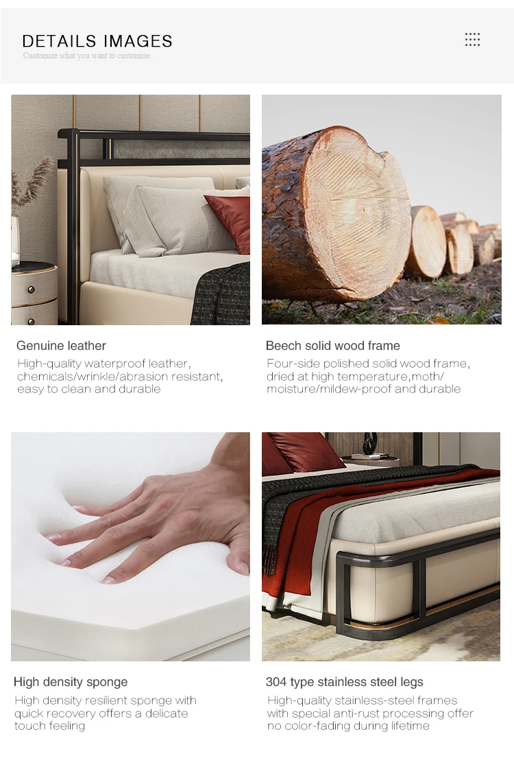 首页 住房活动家具、家用电器 卧室家具 Antique Bedroom Furniture Solid Oak Wood Bed Design Furniture Classic Wooden Genuine Leather Best Classic King Size Bed