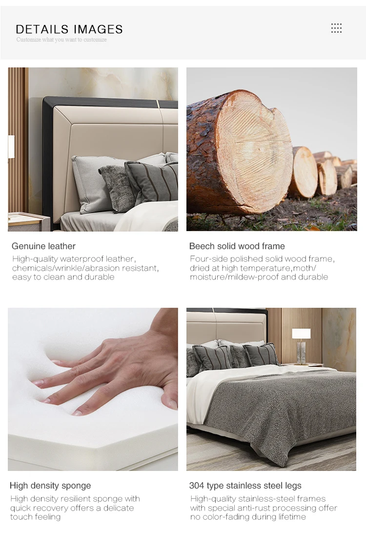 American Style Queen Size Bedroom Set 1.2m 1.8m Double Soft Bed New Model Full King Size Leather Upholstered Bed