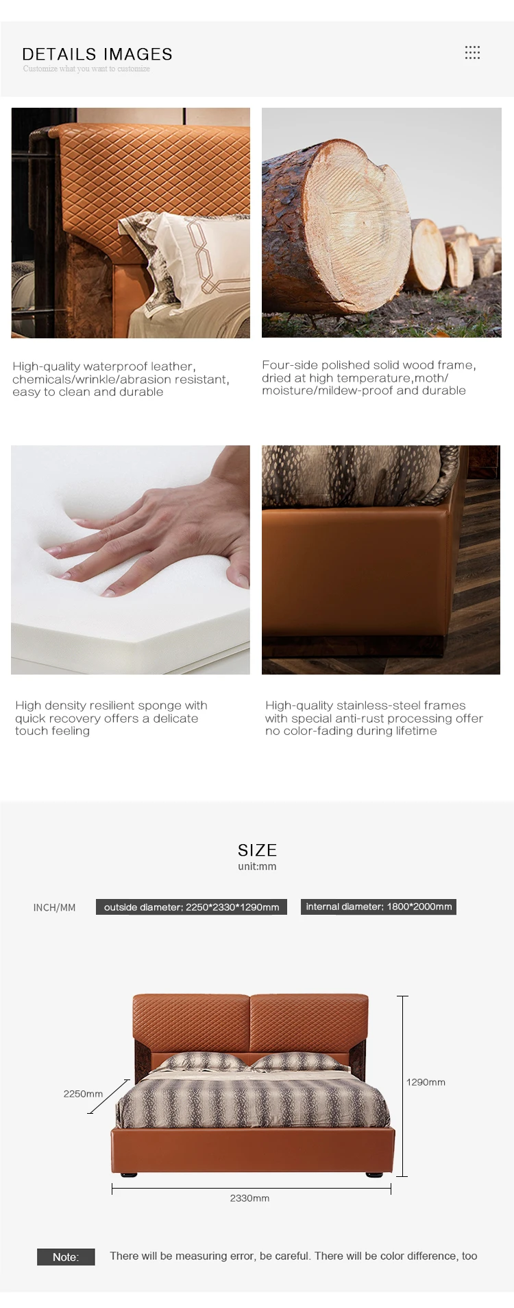 latest italian high headboard leather bed modern furniture solid wood frame luxury bed design queen size bed