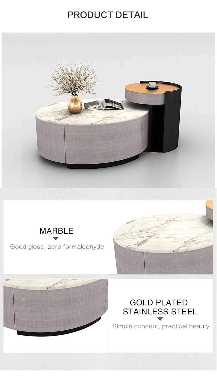 首页 住房活动家具、家用电器 客厅家具 茶几 Italian Round Polished White Marble Coffee Table With Solid Wood Frame And Black Metal Base Side table Modern Tea Tables