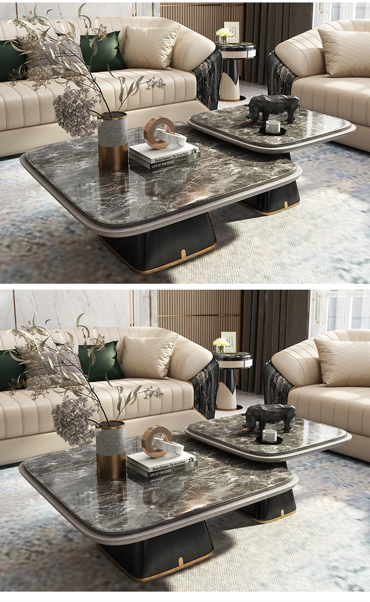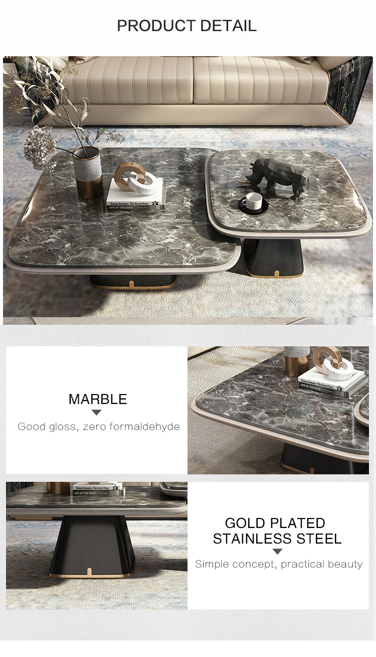 Elegant Marble Top Coffee Table Set Furniture Italian Design Modern Square Tea Table Side Tables Modern Living Room Furniture