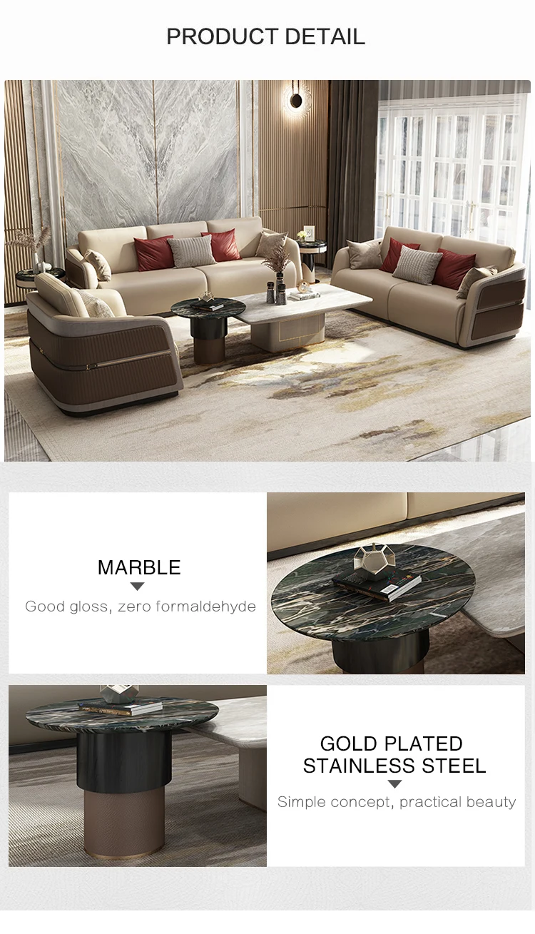 Elegant Marble Top Gold Plated Round Black For Home Living Room Furniture Modern Coffee Table luxury living room furniture